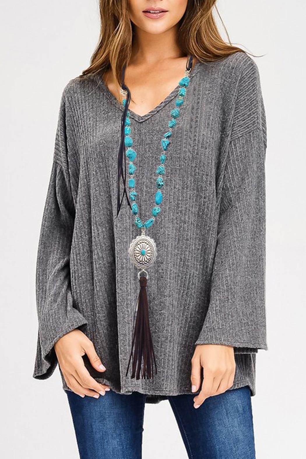 * 38" long faux leather, natural turquoise necklace & pendant, tassel
