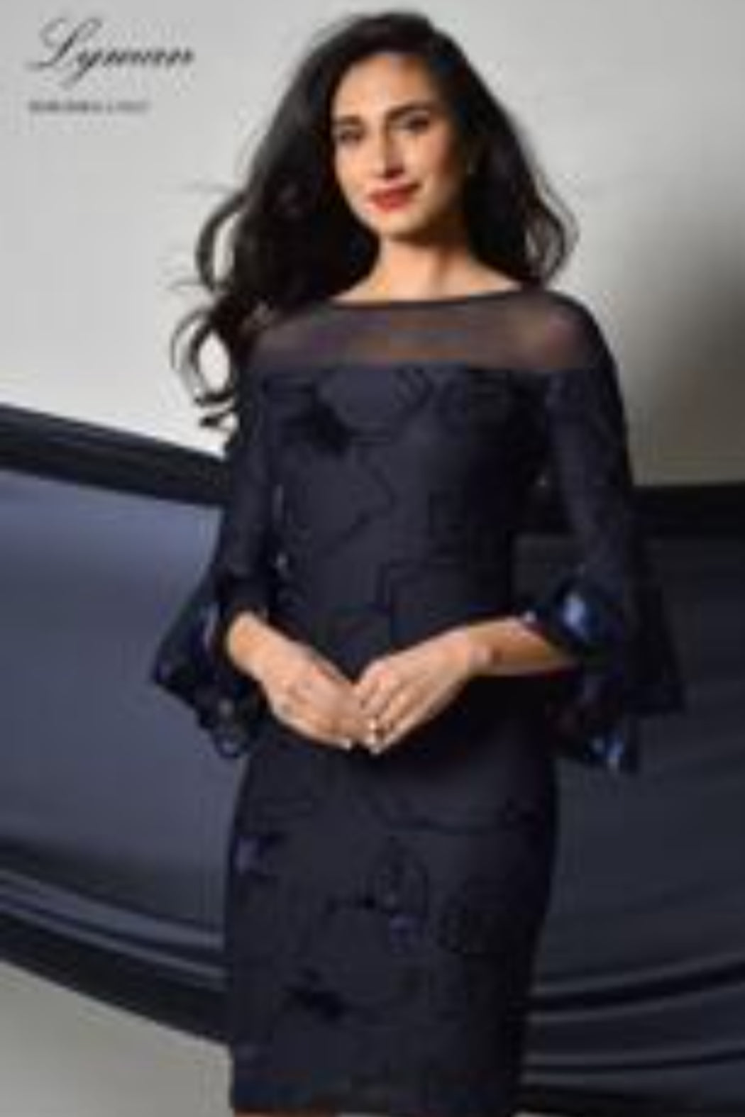 Navy Blue Knit Dress w/Ruffle Sleeves