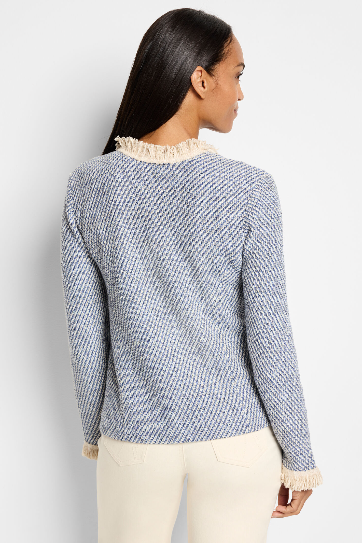 Neutral Fringe Trim Jacket- Blue Multi