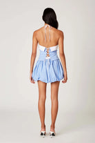 The top comes in a stylish white halter style, adding a touch of elegance to your outfit, while the blue and white gingham pattern adds a playful twist.