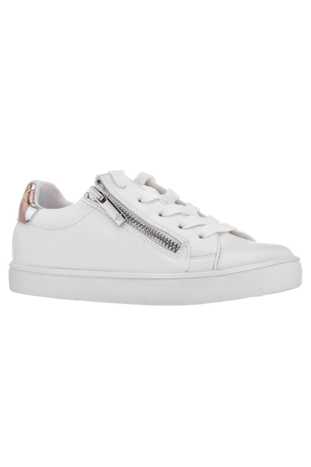 She'll love this "wear with everything" low-top sneaker. With just a hint of decorative rainbow metallic detailing at the back, a functional metal zipper for easy-on access and collar padding; this style is anything but basic.