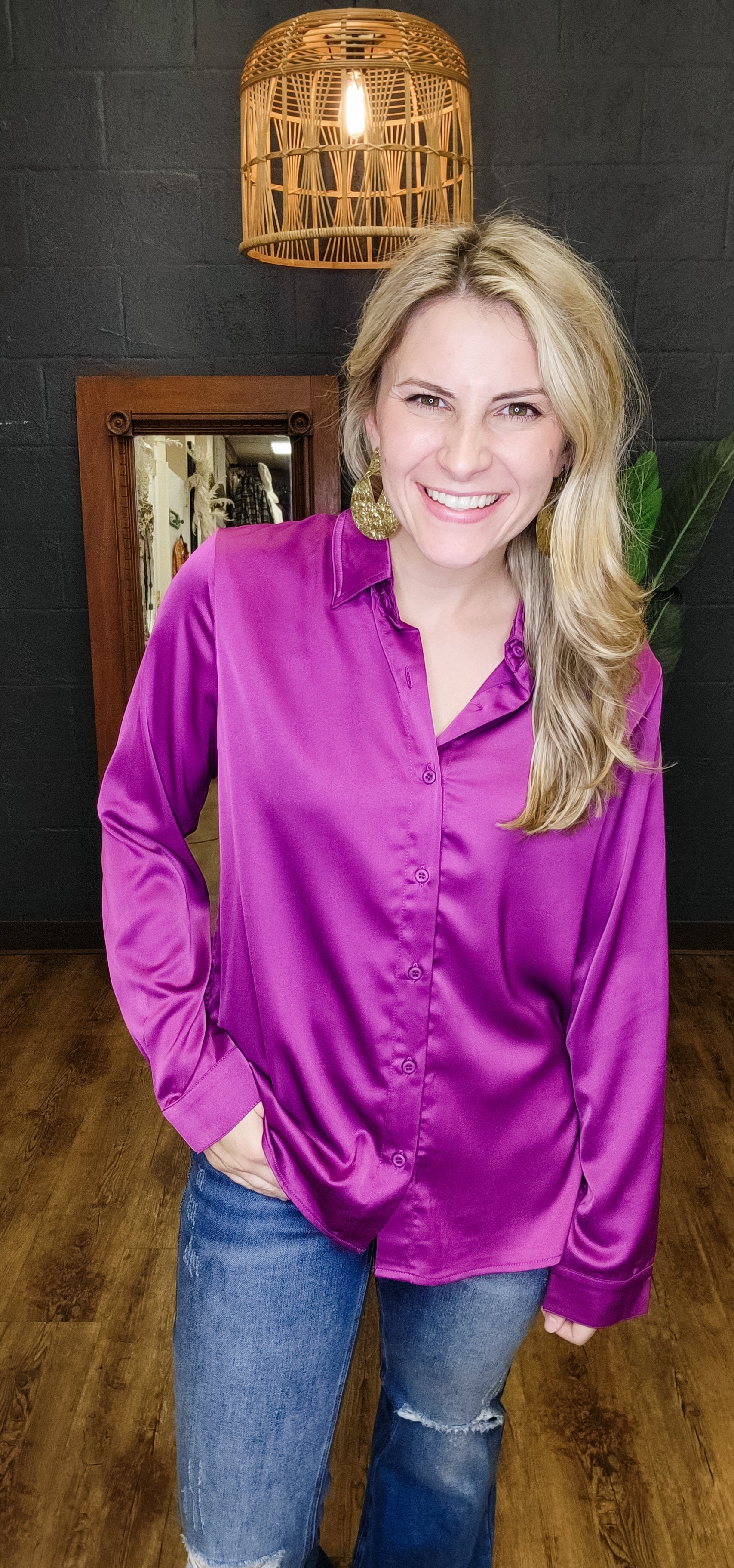 Nine to Five Magenta Satin Blouse (Small to Large)