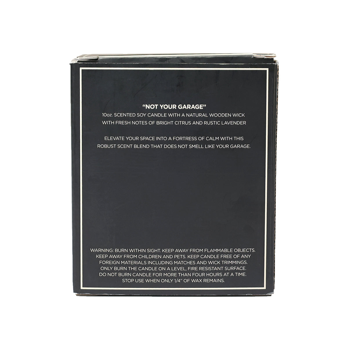 Not everyone appreciates the scent of your garage as much as you do, so we created the next best thing. The Not Your Garage soy candle is a 10 oz powerhouse, featuring a natural wooden wick and refreshing notes of bright citrus and rustic lavender.
