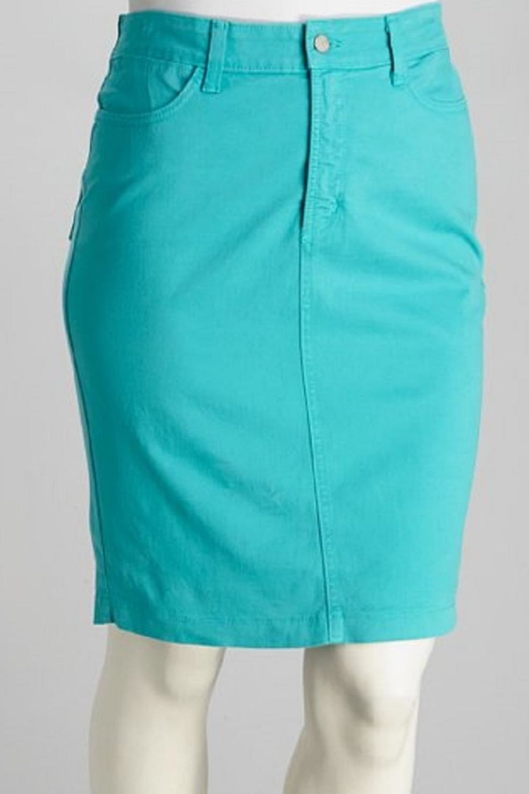 This knee length cotton twill denim skirt has 5 pockets, two front, 1 coin pocket in the upper right hand pocket, and two square back pockets. A straight pencil slim cut, but not overly tight. There is a 6" back slit. The skirt is for casual wear but can be worn to the office for dress down days. May be machine washed in cool water and gentle dryer or hung to dry.