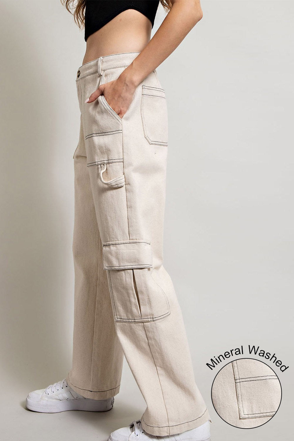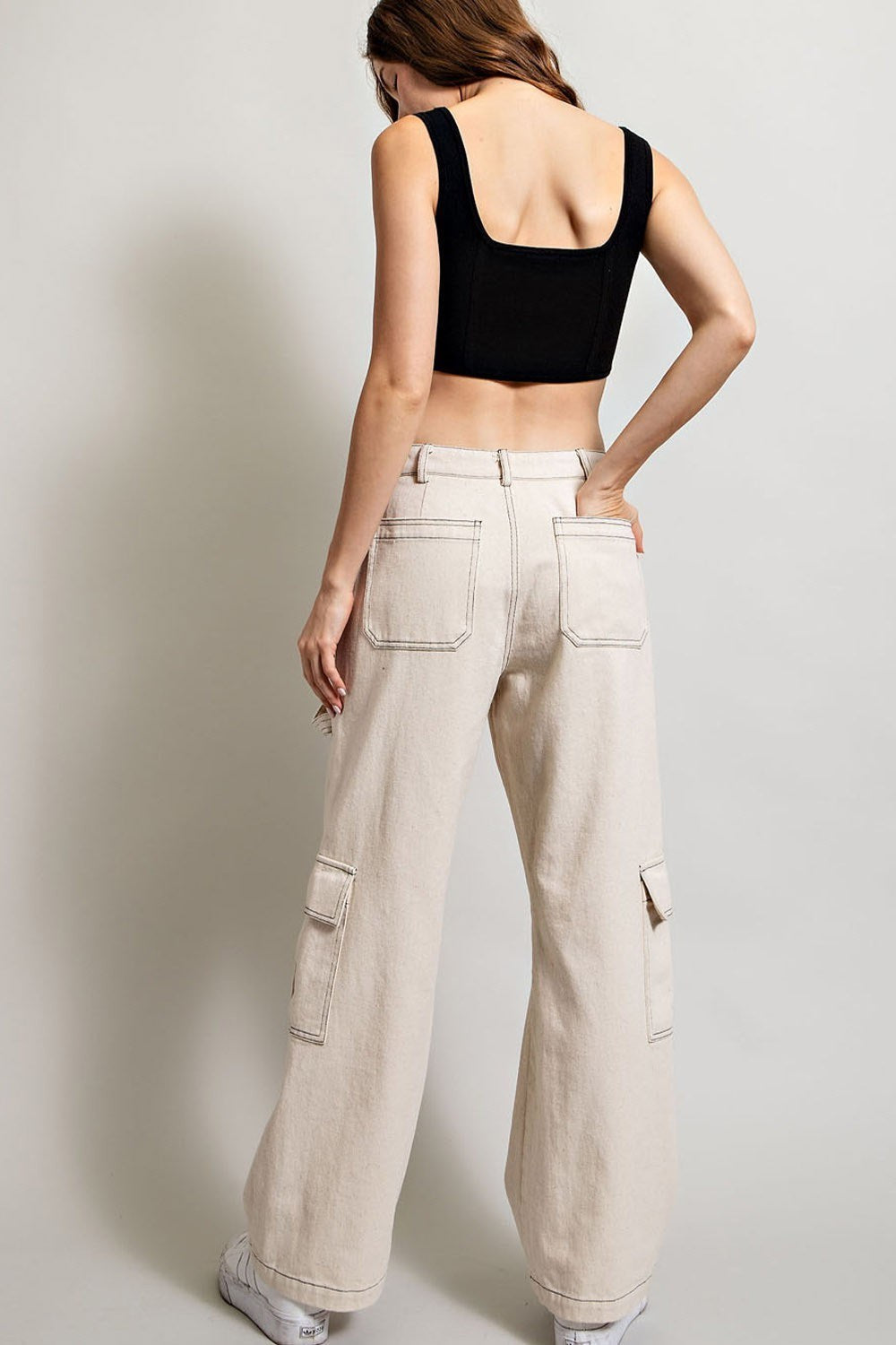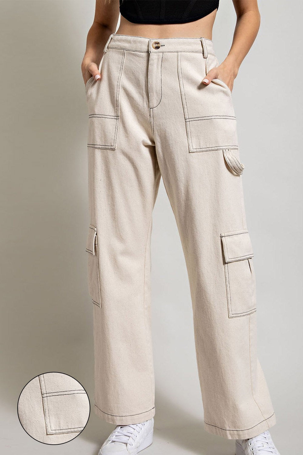 Cargo straight leg pants featuring side hip pockets, back pockets, cargo pockets, and a beautiful seam contrast. These have a relaxed fit, but we recommend purchasing your usual size.