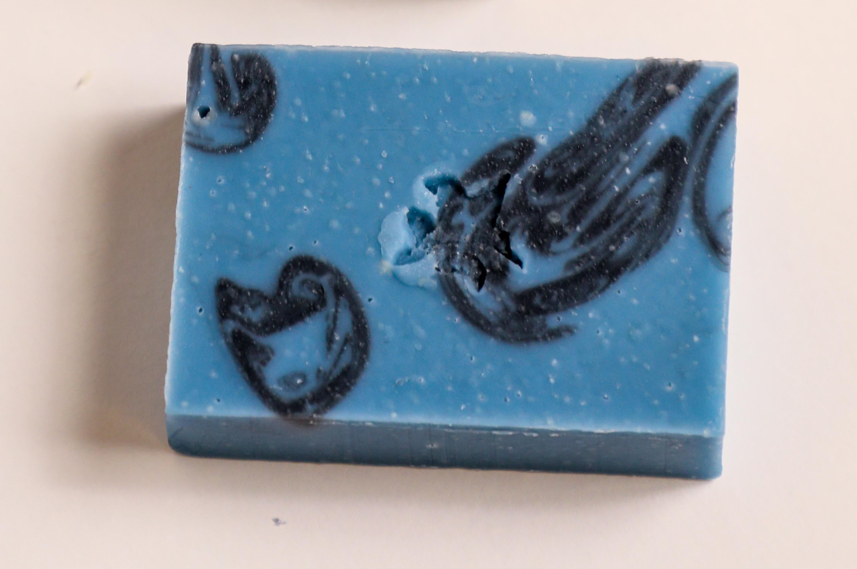 These amazing bars are handmade with: Olive oil, Coconut oil, Shea Butter, ,Sunflower Oil, RSPO Palm Oil, Canola Oil, Aloe Vera Juice, Sodium Hydroxide, Ultramarine Mica Mineral, Activated Charcoal, Cocoa Powder; Cypress, Patchouli, Cedarwood, Clove Essential Oils, & Natural Sandalwood Fragrance Oil. Package: 100% Recycled Paper