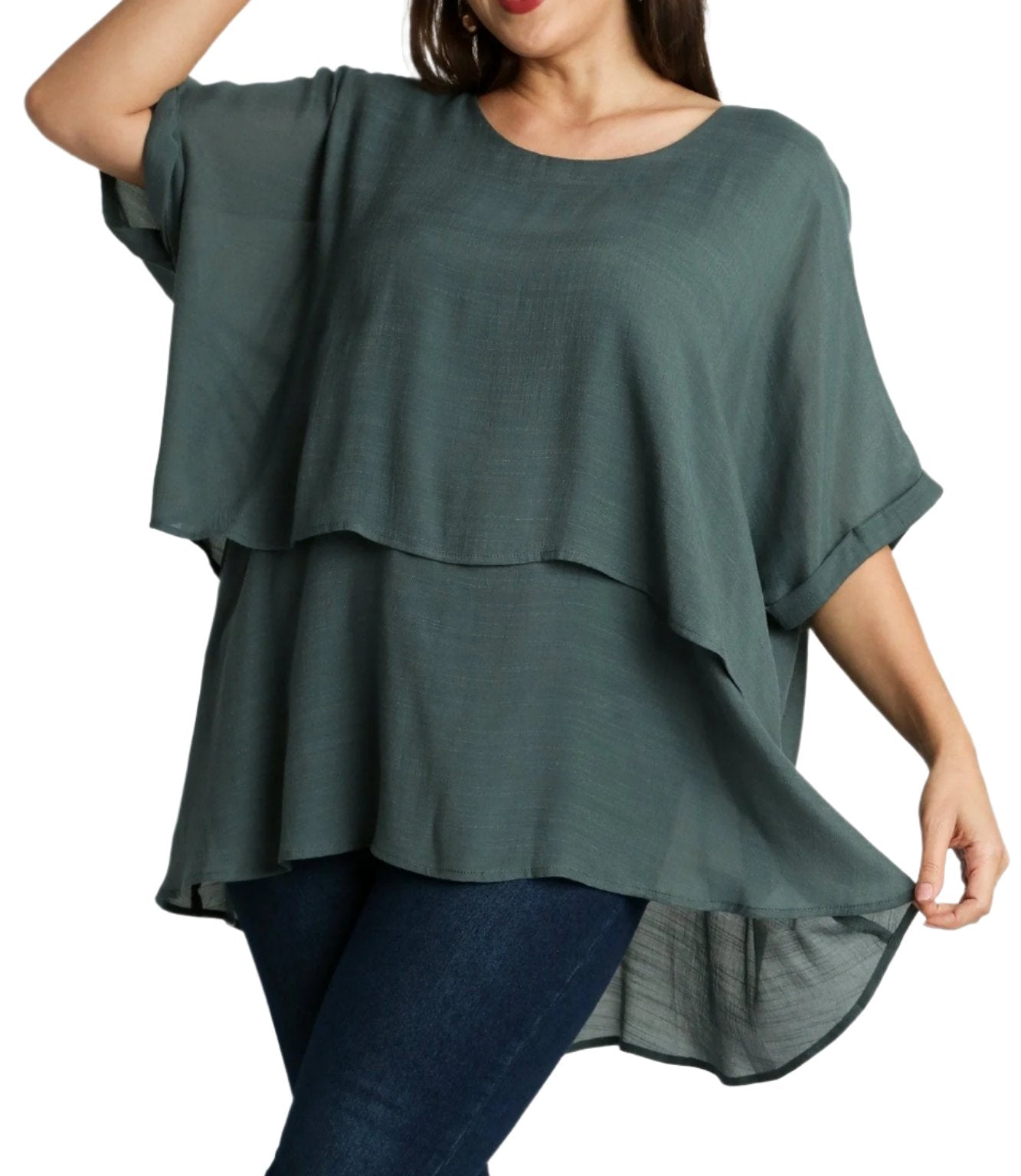 Stay stylish and comfortable with our Double Take Layered Tunic Top! This trendy top features cuffed 3/4 sleeves and is made from a soft blend of rayon and polyester. Perfect for sizes XL to 2XL, it offers both fashion and comfort. Elevate your wardrobe with this must-have piece!