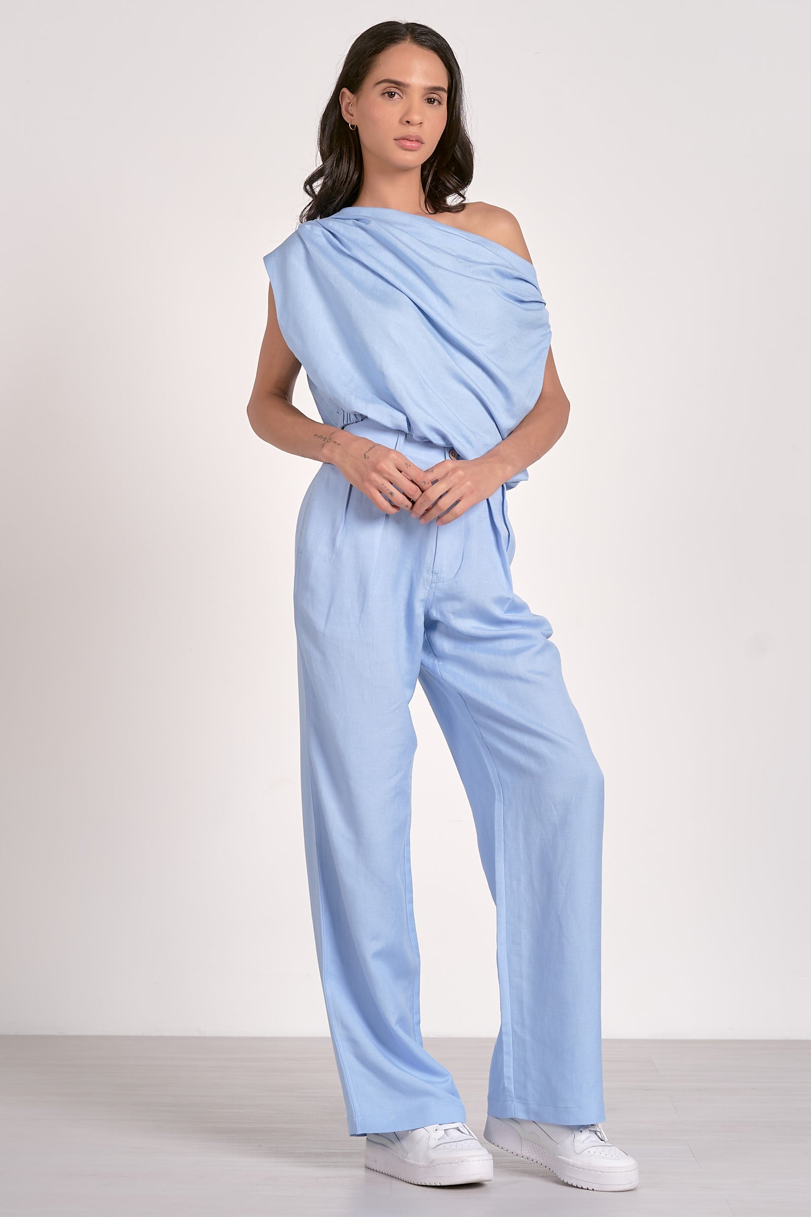 This off the shoulder top is a must-have for your wardrobe. With its fun detail and light blue color, it's the perfect addition for any occasion. Its flattering off the shoulder design will make you stand out while its lightweight fabric allows for comfort and style. Brighten up your look with this stylish top today.