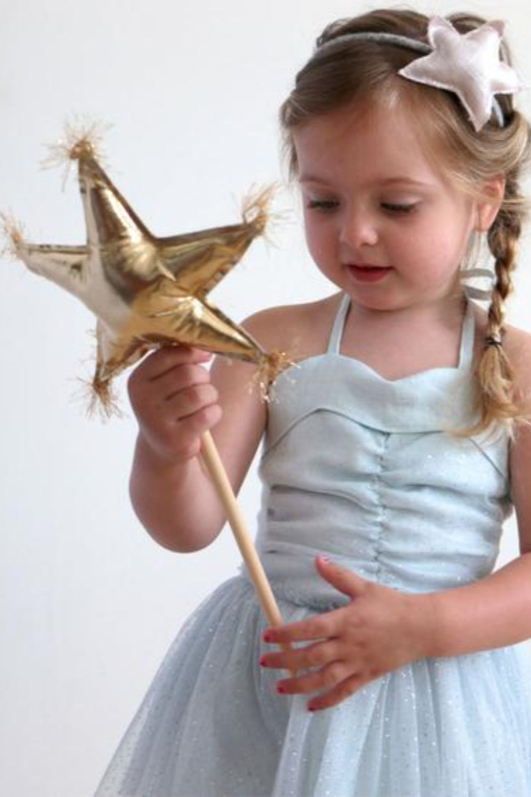 Every girl should have a wand to create a magical world. Super shiny metallic star with sparkle yarn tassels. Fun for photo props, playtime or finishing touch to her princess costume. Made in Minnesota.