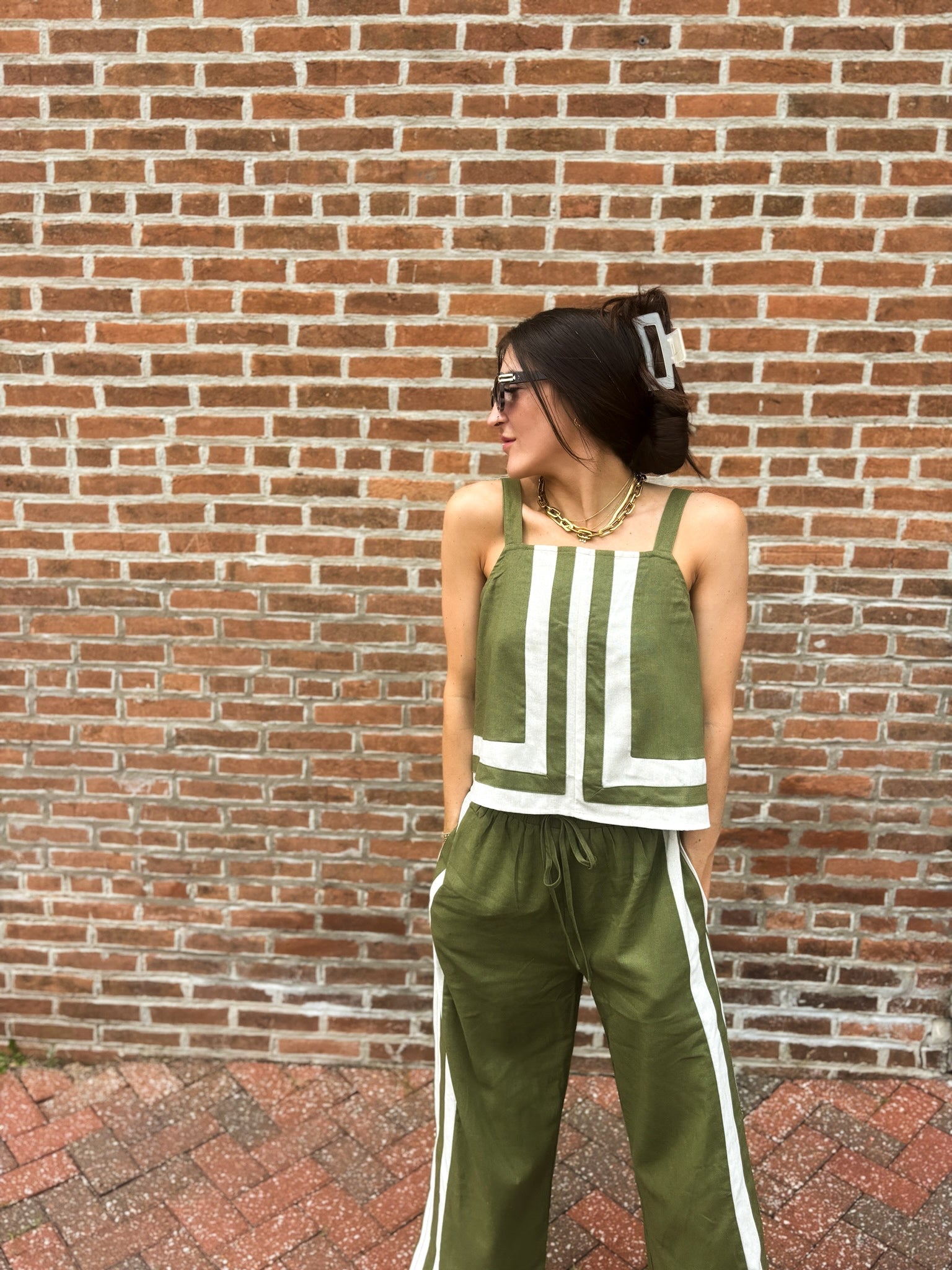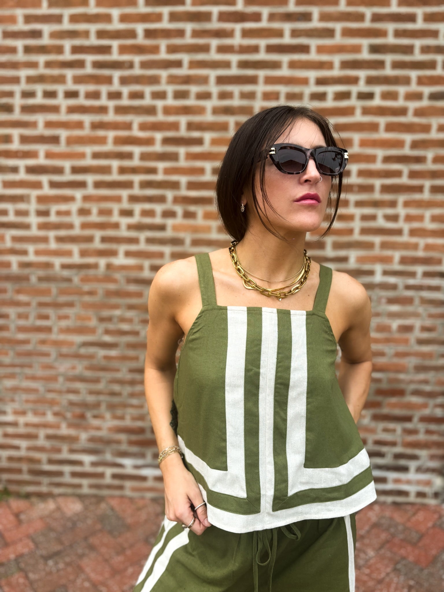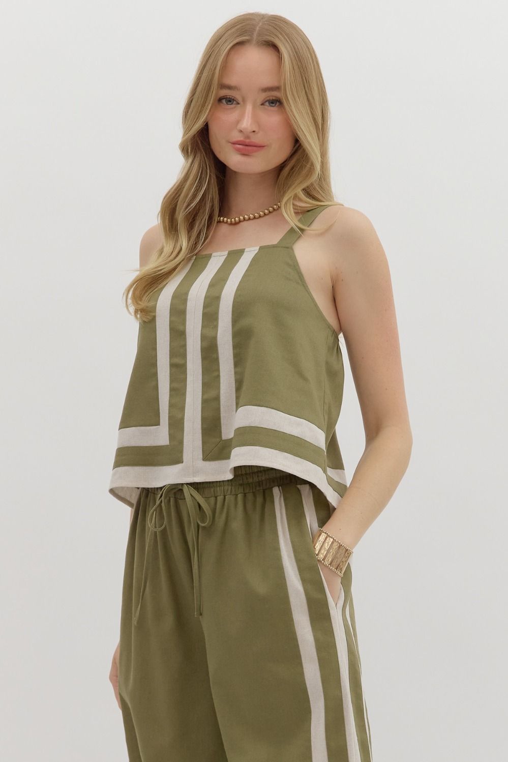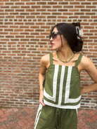 The Olive Avenue Tank is a fun and flirty pullover top with a solid, adjustable wide shoulder strap for the perfect fit. Its eye-catching abstract border adds a pop of contrast, while the elasticated back ensures comfort all day long. Fully lined for a smooth feel, this tank is ready to brighten up your wardrobe with playful style and easy wearability.