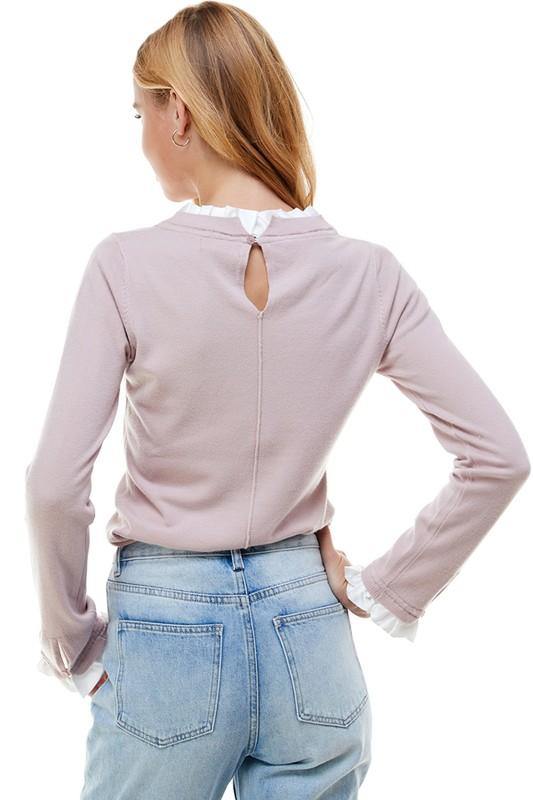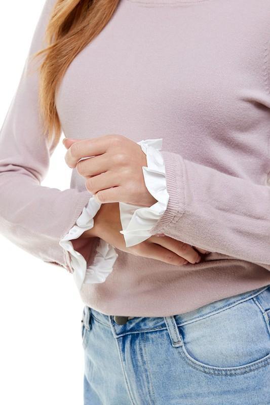 On Twelfth Mock Neck Contrast Ruffle Sweater