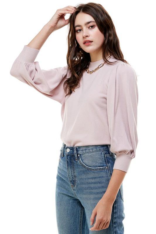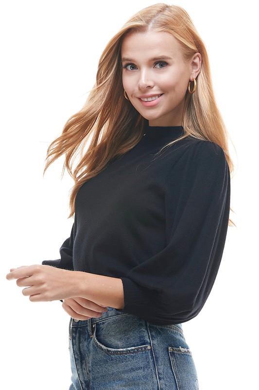 PUFF SLEEVE MOCK NECK SWEATER