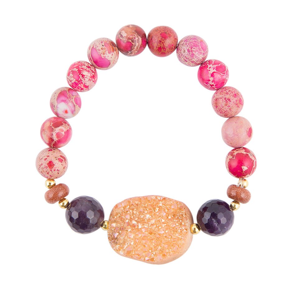 Orange Druzy, Amethyst, Sunstone and Fuchsia Agate Bracelet