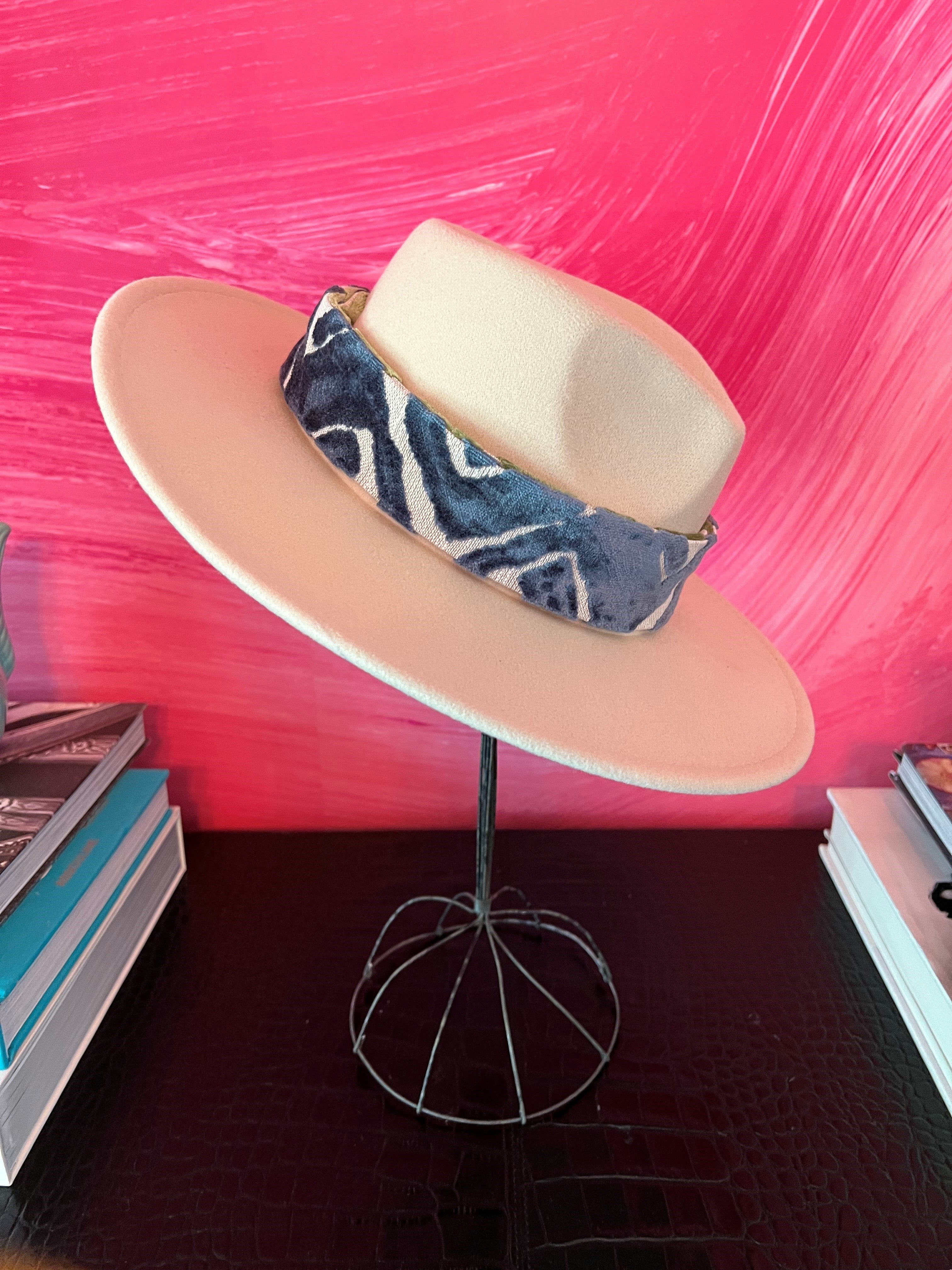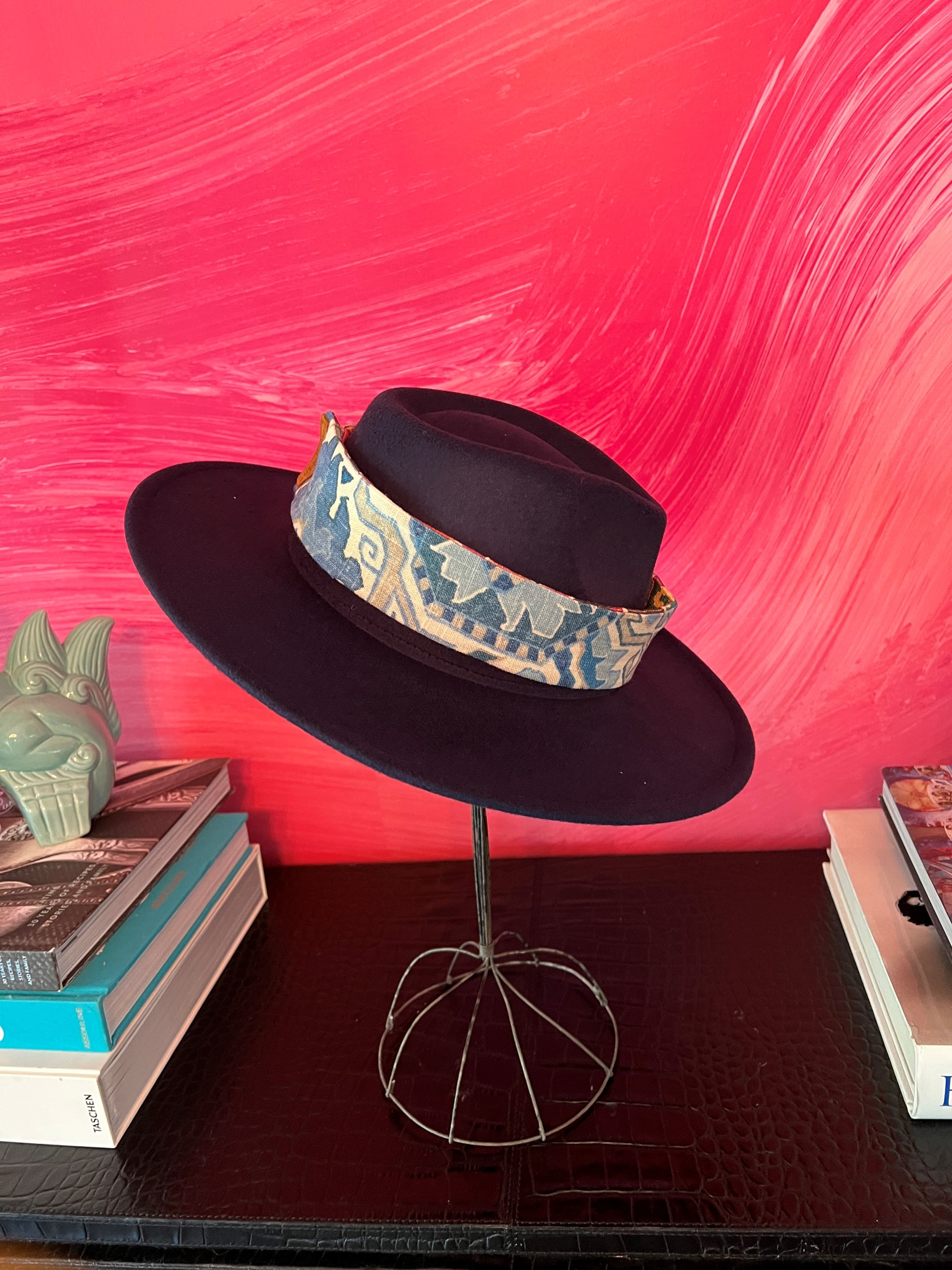 Two for one and works on most hats. Reversible, detachable hat band with three length options (invisible snaps in back). One side is a classic + funky (somehow we managed that) blue velvet, the other a mossy green. Both sides pair perfectly with most colors.