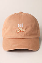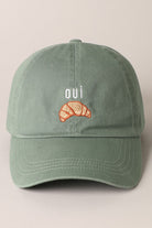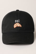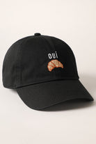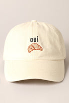 Make a statement with the Oui Croissant Baseball Cap, the perfect accessory for adding a touch of playful charm to any outfit. The classic baseball cap style is paired with fun "Oui" embroidery and a cute croissant design, making it a standout piece for your casual wardrobe.
