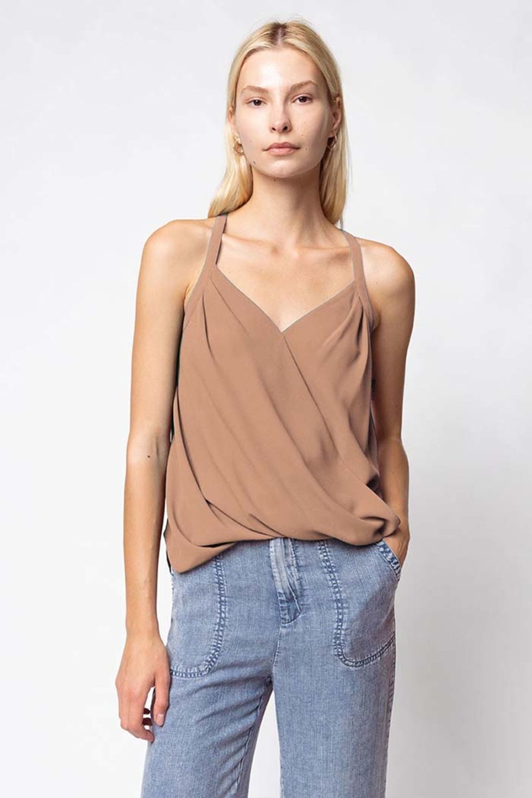 This tank top features an overlapping front design that creates a subtle, yet stylish, draped effect. The sleek silhouette offers a modern twist on the classic tank, making it a versatile choice for layering or wearing on its own. Its soft, breathable fabric provides ultimate comfort, perfect for warm days or as a base layer in cooler temperatures.