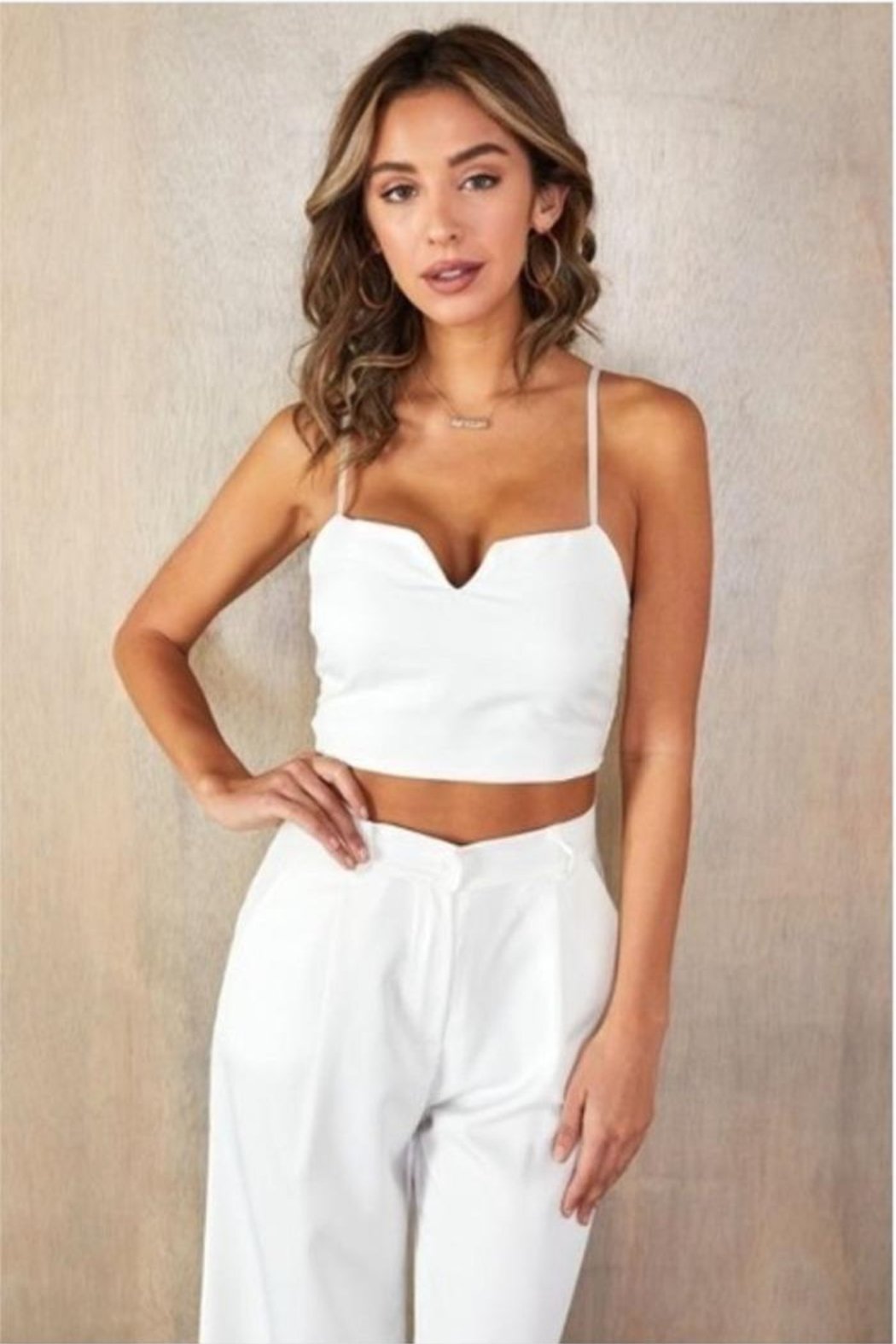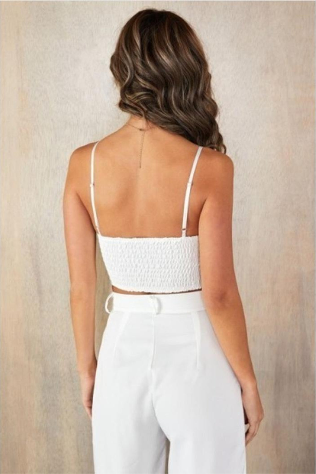 Spaghetti strap, padded crop top with shirred back