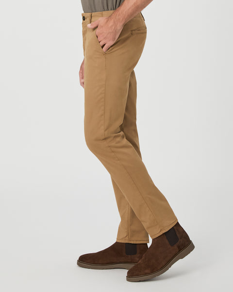Introducing the Paige Danford Chino - Dried Tobacco. Our modern chino is fitted through the thigh and tapered at the leg opening, for a flattering look. Made with a cotton blend and slight stretch, this pant offers both comfort and style. The light brown shade adds a touch of versatility to your wardrobe. Upgrade your everyday look now.