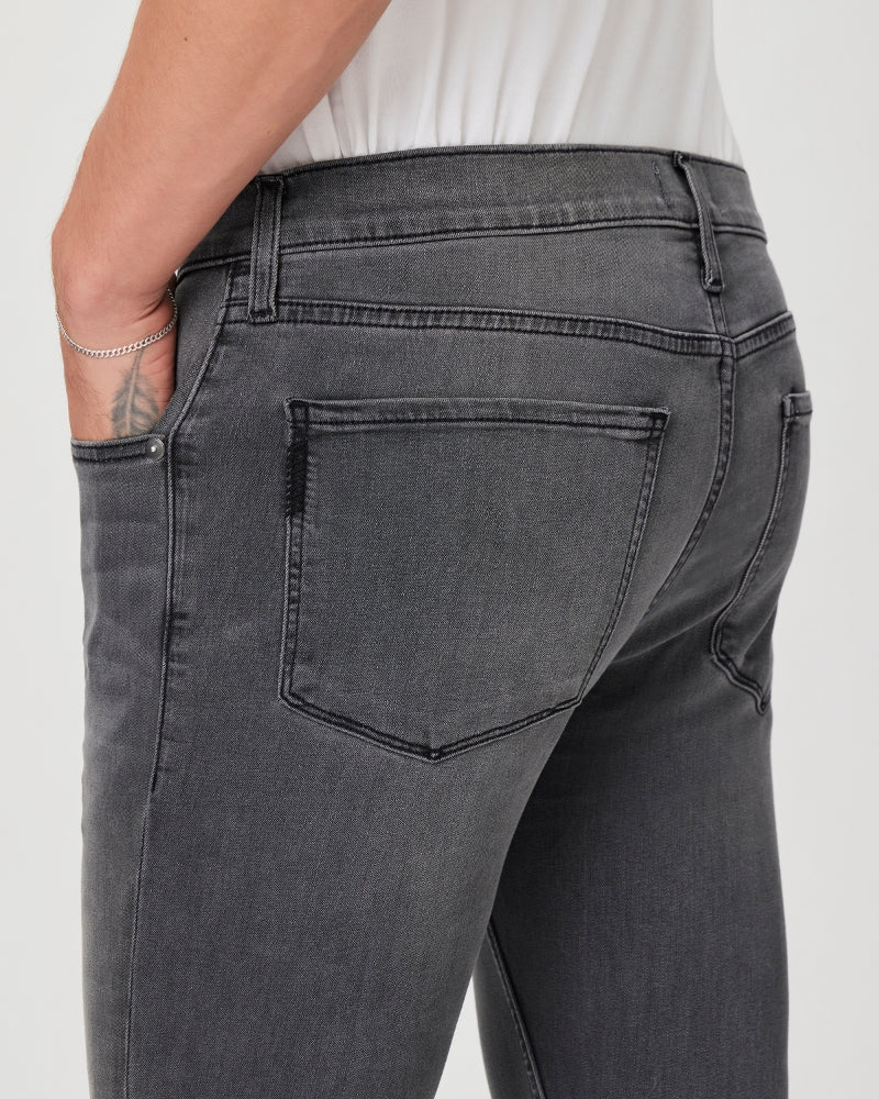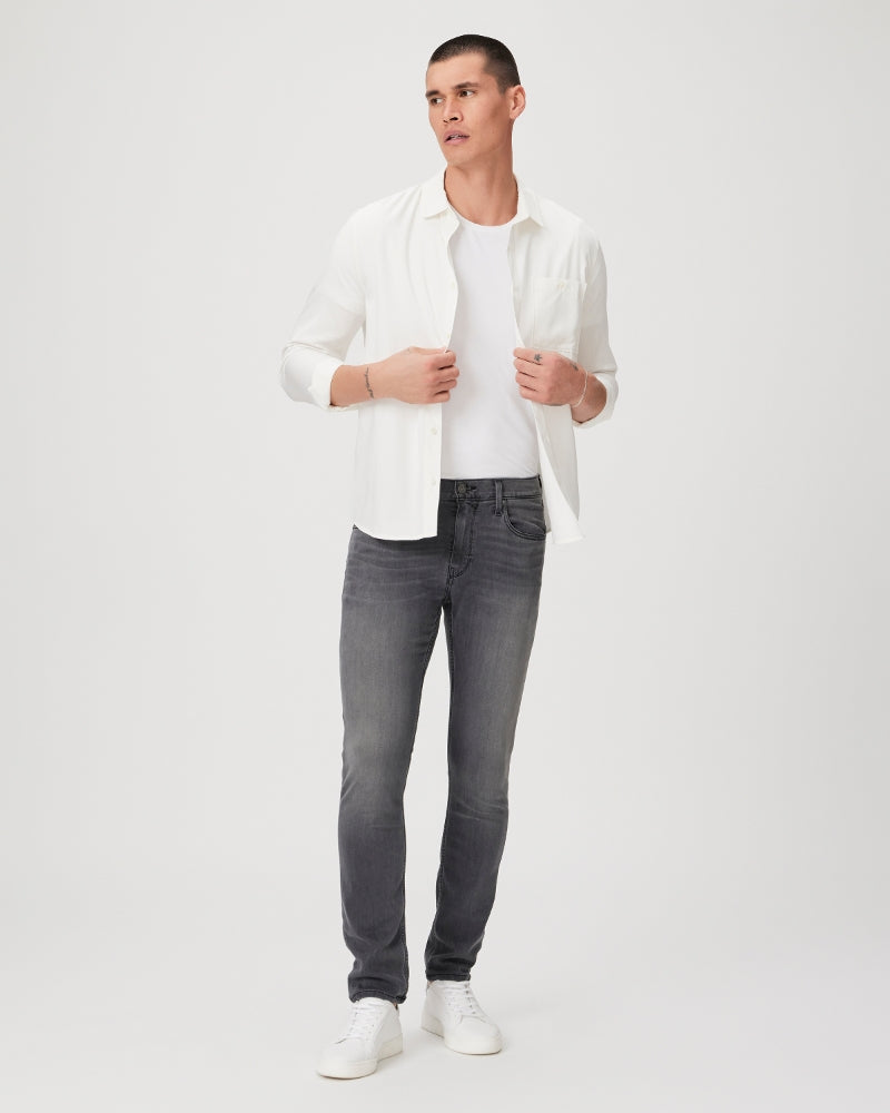 Experience the comfort and style of our signature slim fit, the Lennox. Designed to hug your thighs and taper from knee to leg opening, this pair in a dark grey wash features subtle whiskering and fading for a worn-in appearance. Crafted from TRANSCEND denim, these jeans provide the perfect fit with premium stretch and recovery, making them ideal for everyday wear.