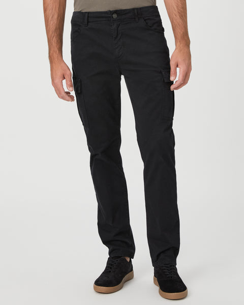 Introducing the Ronin Cargo Pant from Paige. Made with soft, stretch sateen fabric, these fitted and tapered pants offer both comfort and style. Garment dyed in black, they feature cargo pockets for added utility. Rock the ultimate off-duty look with this refined silhouette.