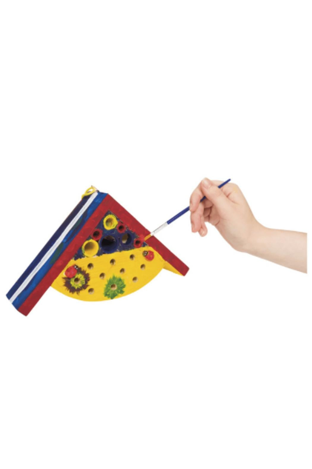 From Toysmith! Let your little bring out their creativity with this great arts and crafts piece. Hang from your porch or put it out in your garden. Includes 9½” x 2½” x 5½” wood bug house, eight paint pots and a paintbrush. For ages 3 and up.