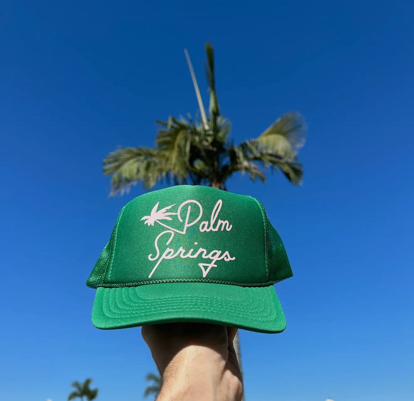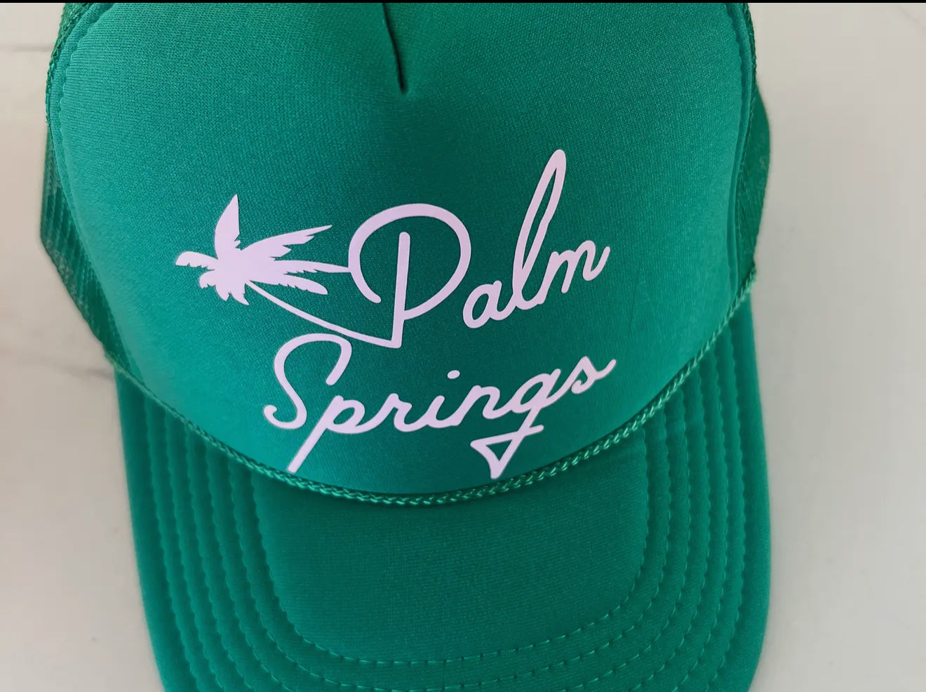 This fun Palm Springs Trucker Hat features a hot pink and green color. Stay cute and cool all Summer long 😎