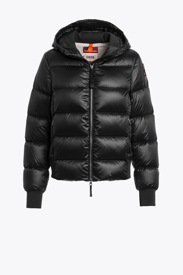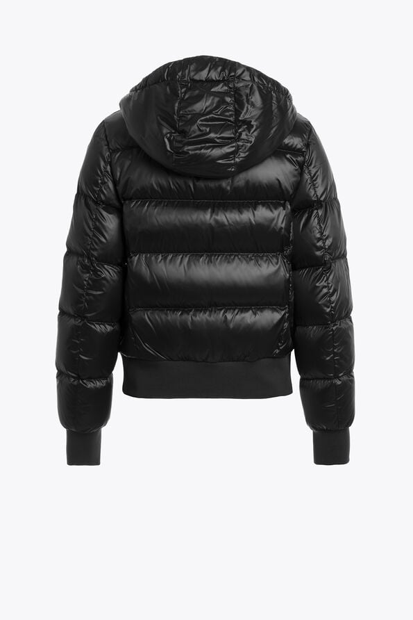 Introducing Mariah, the extra long down-filled bomber jacket from Parajumpers. Made of durable polyester-nylon twill, this short quilted jacket features a hood for protection against the elements. Perfect for any occasion, this simple yet stylish jacket is a wardrobe essential. Get yours now!