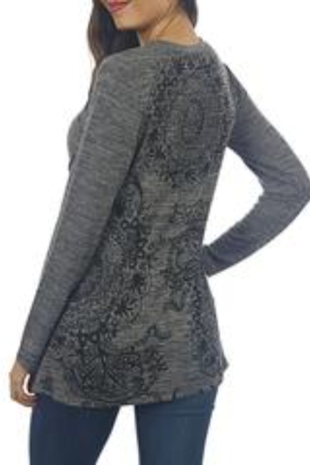 Impulse California Women’s patchwork tunic is made out of delicate knits and crochet laces. Lightweight and soft, it is easy to dress up or down.