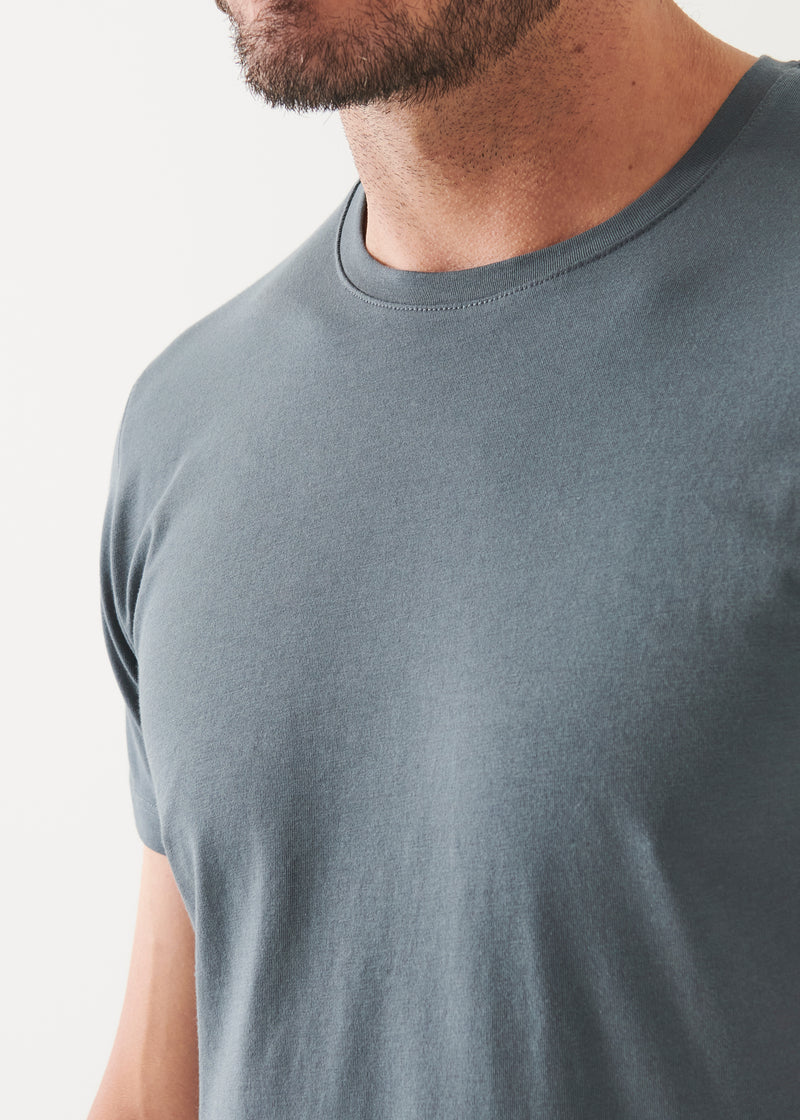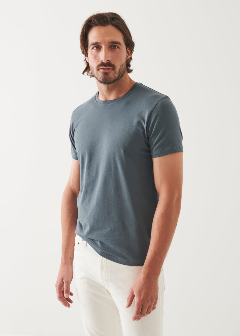 Our Patrick Assaraf Iconic T-shirt in "Stream" is made from our exclusive Peruvian Pima cotton stretch jersey, resulting in long-lasting performance and a luxuriously soft hand feel. The pre-shrunk fabric and added stretch make it a versatile and comfortable layering piece.