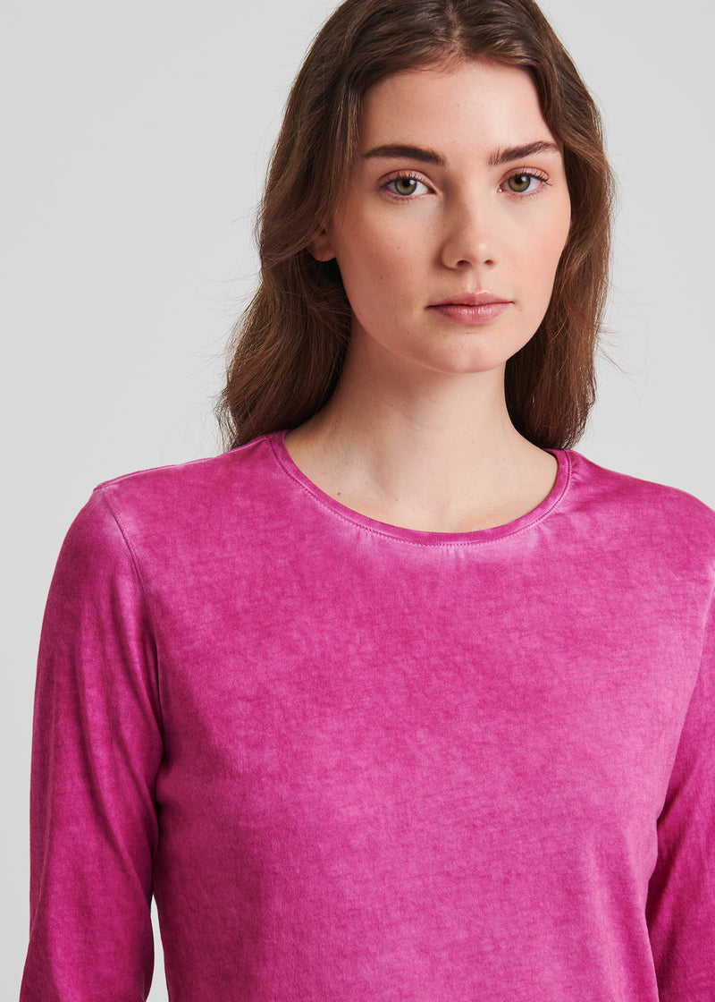Introducing our Patrick Assaraf Pima Sublime Classic Crew - Mulberry. Made from luxurious Peruvian pima cotton, this washed long sleeve crewneck t-shirt boasts a refined vintage aesthetic. Soft, comfortable, and versatile - perfect for layering. Upgrade your wardrobe with this unique dyeing process.