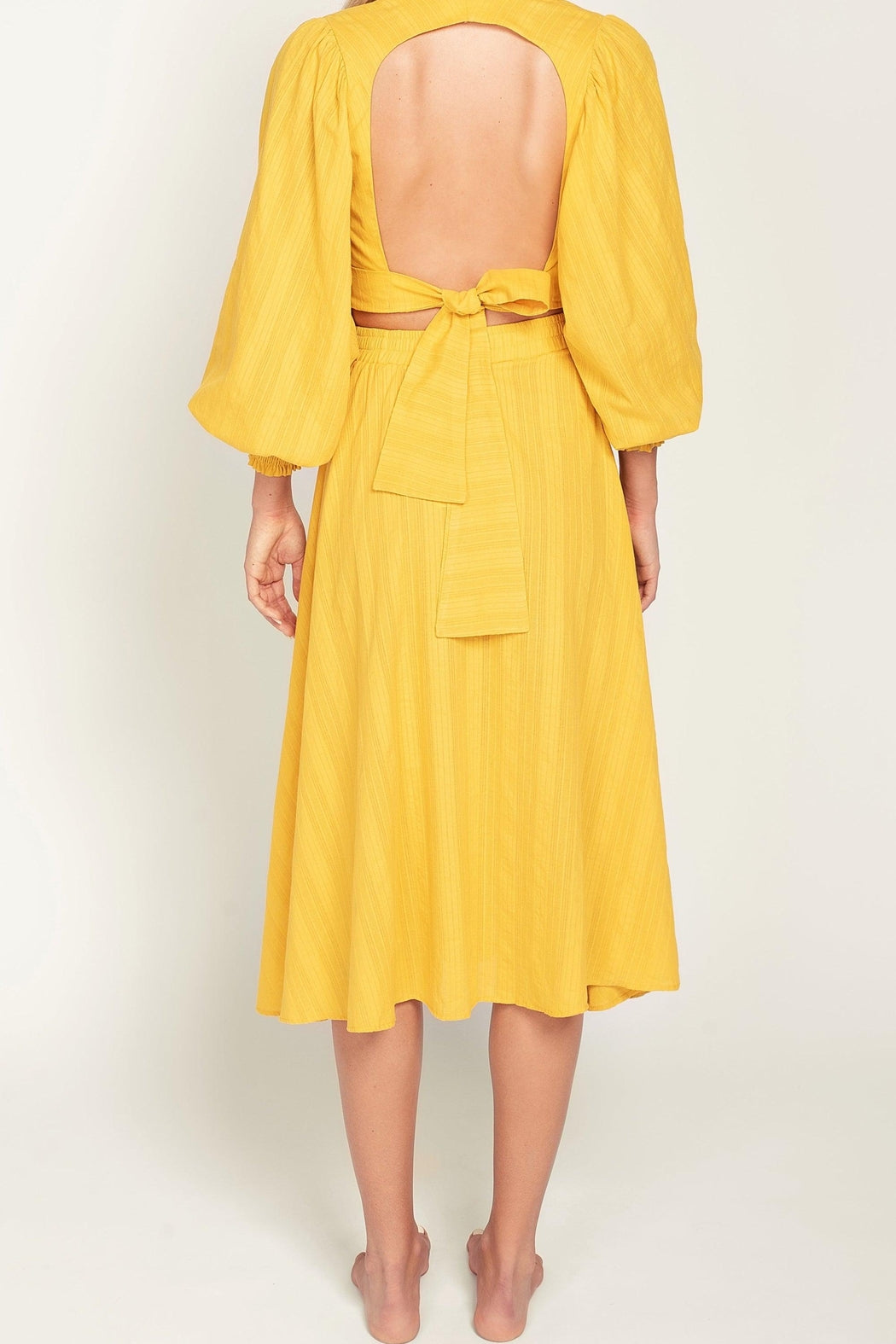 A flowy midi skirt with an elastic waist and everyone's favorite, pockets! Pair with the matching Clara blouse for the complete look.
