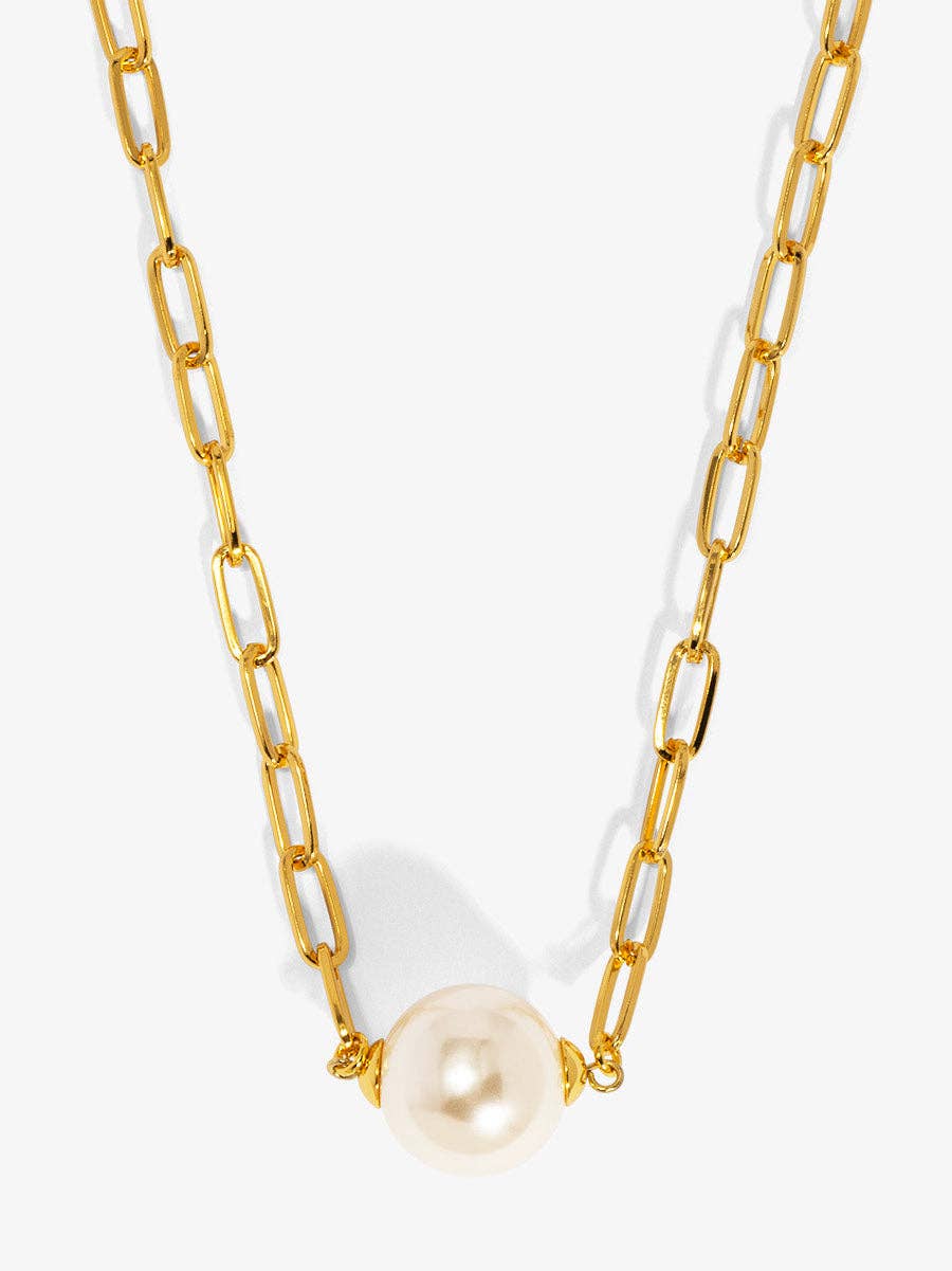 Link collar necklace plated in 18K gold and accented with a pearl charm.
