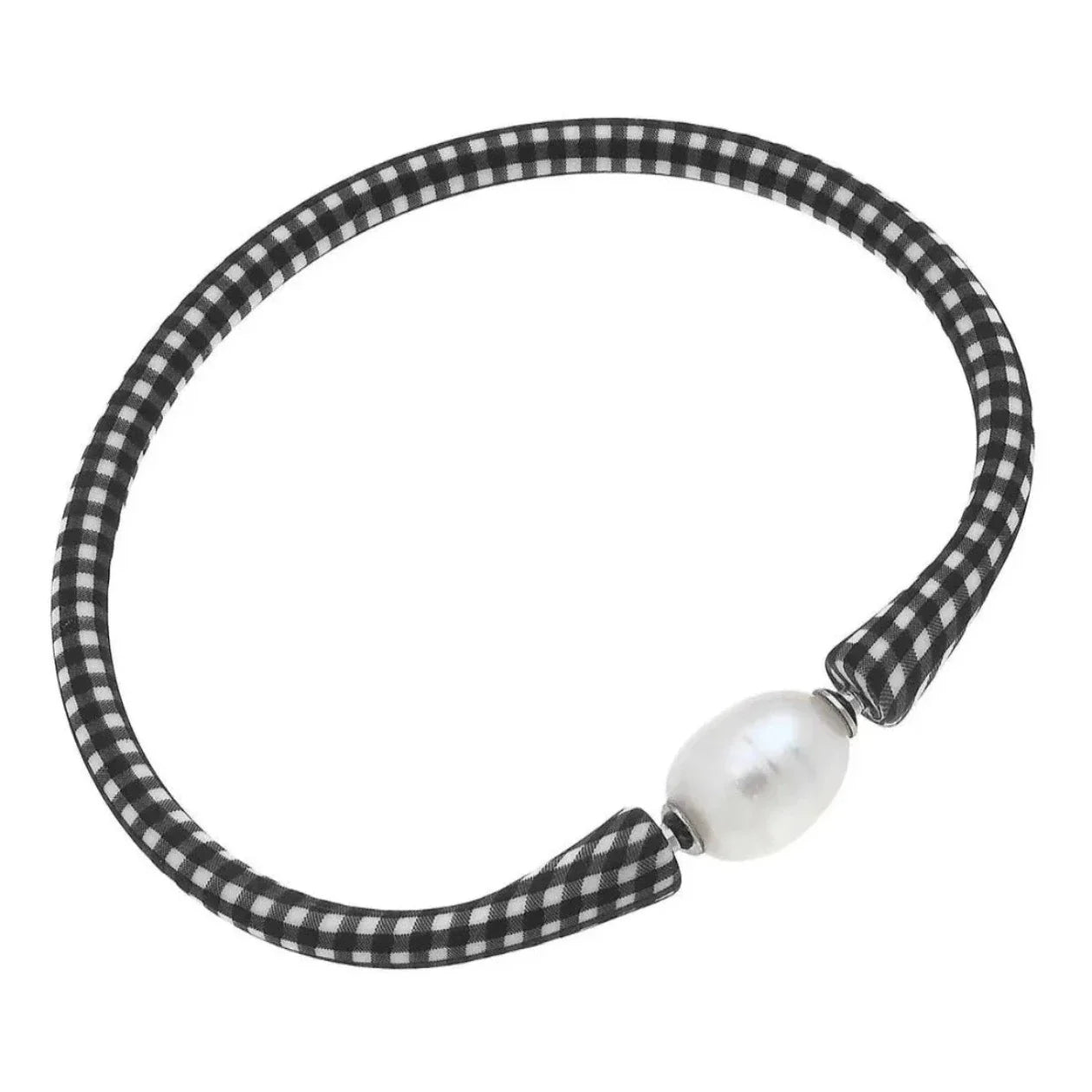Flexible silicone & Freshwater Pearls make this Bracelet completely waterproof. Simply roll on & off your hand, or open & close at the pearl, to create the perfect arm party for every occasion.