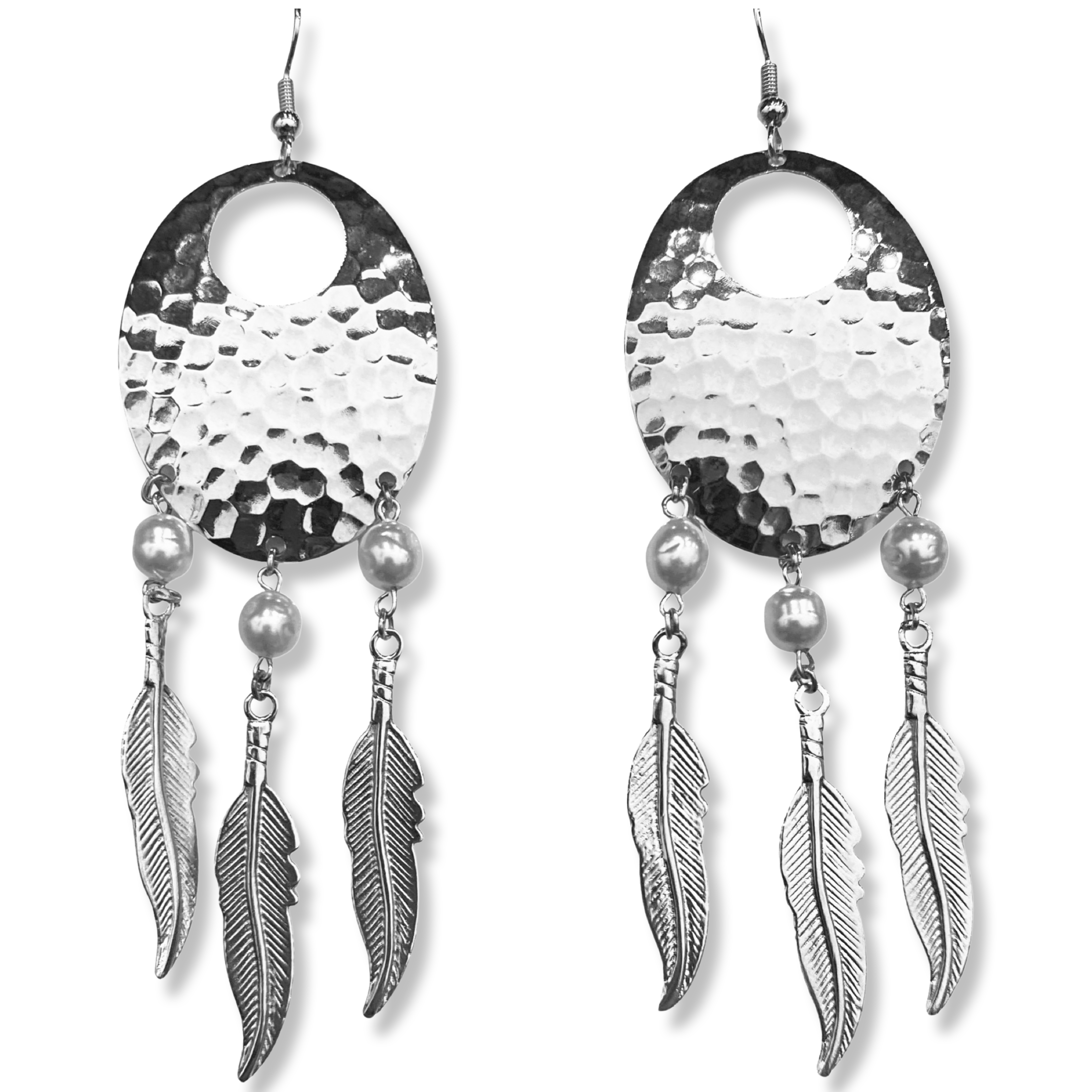 Introducing The Urban Charm Dream Catcher Earrings, where bohemian flair meets modern elegance. Crafted with exquisite attention to detail, these earrings feature hammered metal hoops in either oval or diamond shape and are adorned with pearl accents beads. Available in both gold and silver finishes, these earrings add a touch of whimsy and sophistication to and ensemble. Embrace your Urban Charm and let these dream catcher earrings be a statement piece in your jewelry collection.