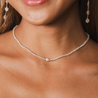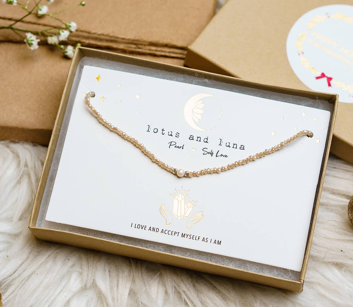 Dainty and delicate our crystal necklaces offer the perfect pop of shimmer to wear on their own or layered. This necklace features Pearl whose properties enlighten the mind, improve mood, and promotes self-love. Each necklace has 4 different size options to adjust to your perfect fit and snip off any excess cord. This necklace can also be worn as a double wrap bracelet!