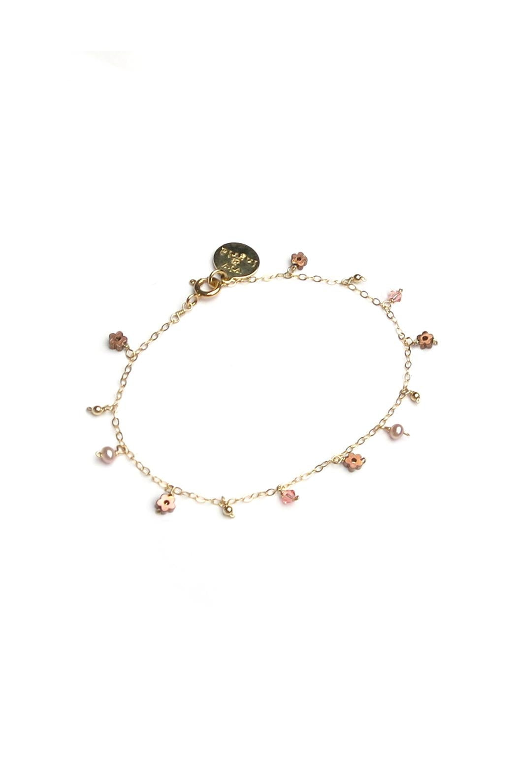 The soft, pale pink of the Peony is one of our favorite hues, so we brought it to life with this garland-inspired bracelet! Each bracelet is handmade in 14k gold fill and features specialty cut semiprecious Hematite flower stone dangles, Swarovski crystals, freshwater pearls and metallic beads. Bracelet is 7" with a .5" extension and has a spring clasp. Each piece comes with our signature fabric jewelry pouch - perfect for travel, storage and gift giving!