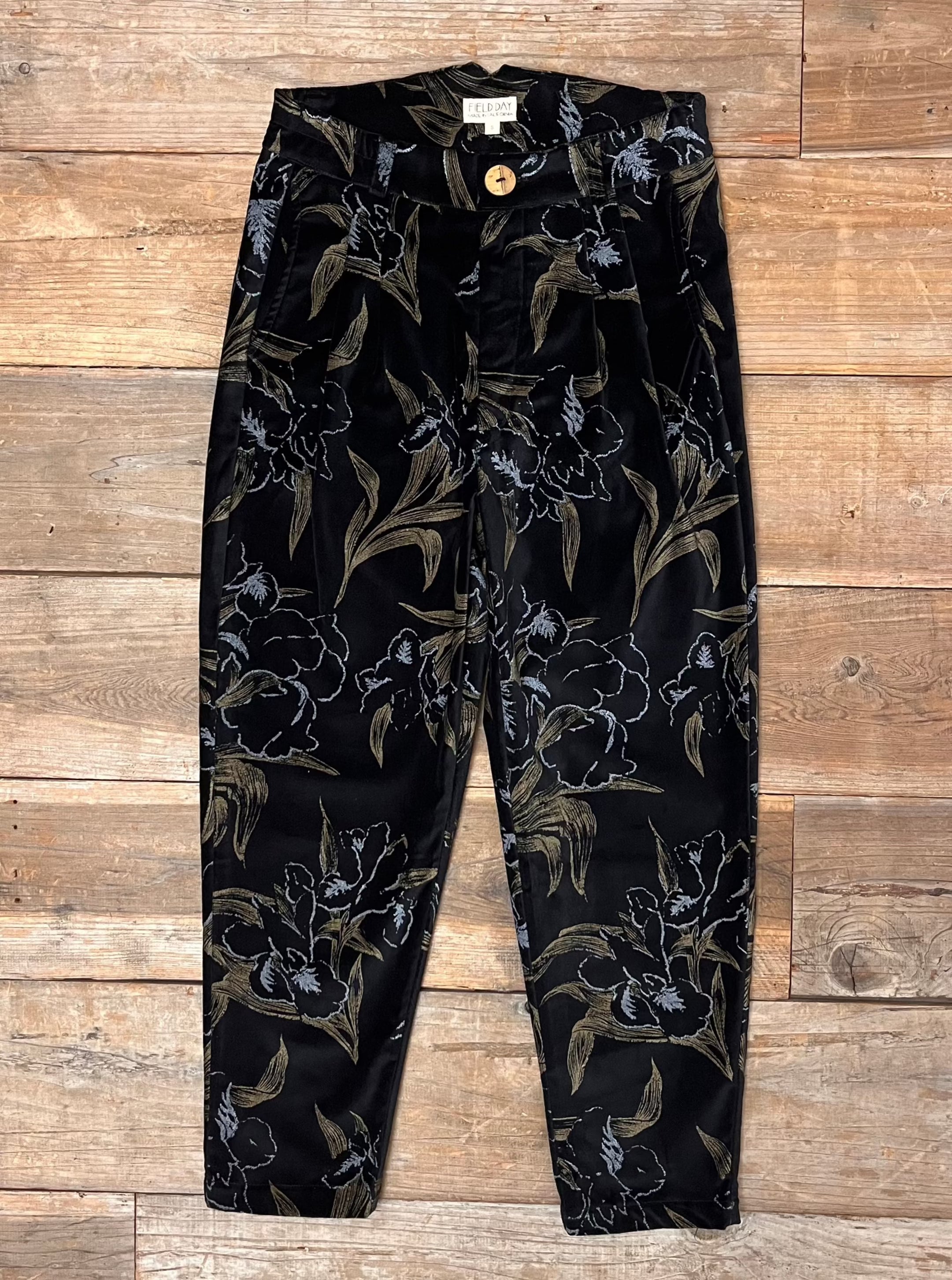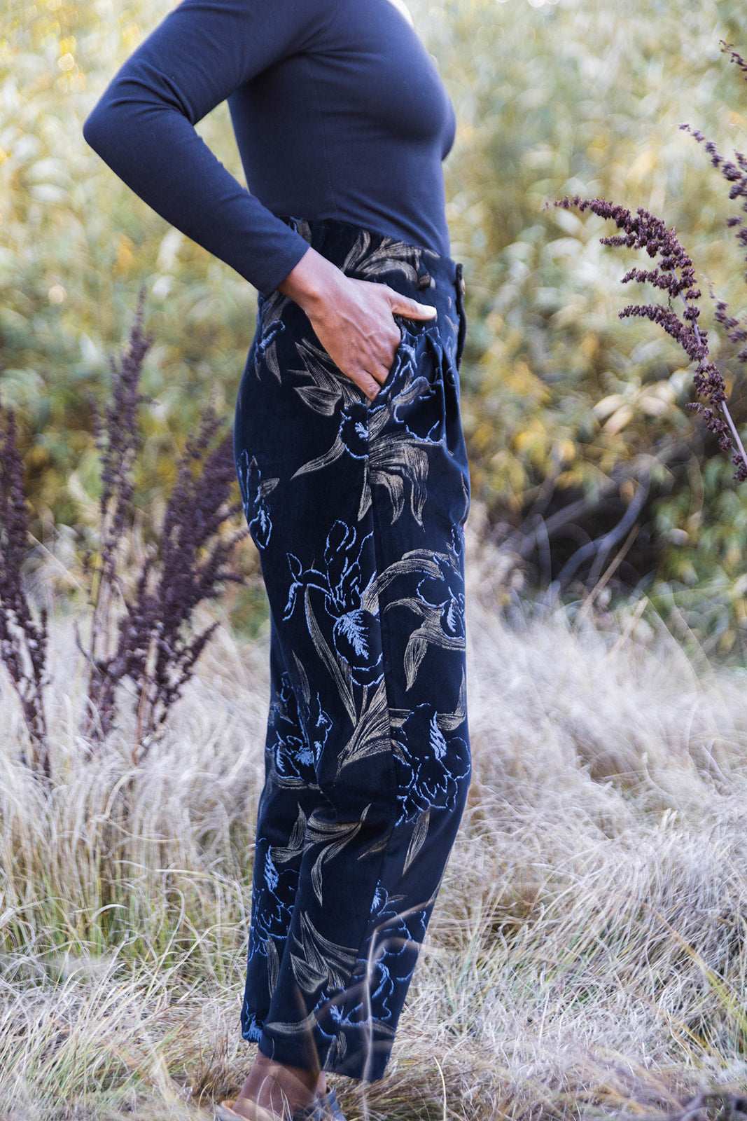 Made from a super unique deadstock plush velvet with glimmering floral print.