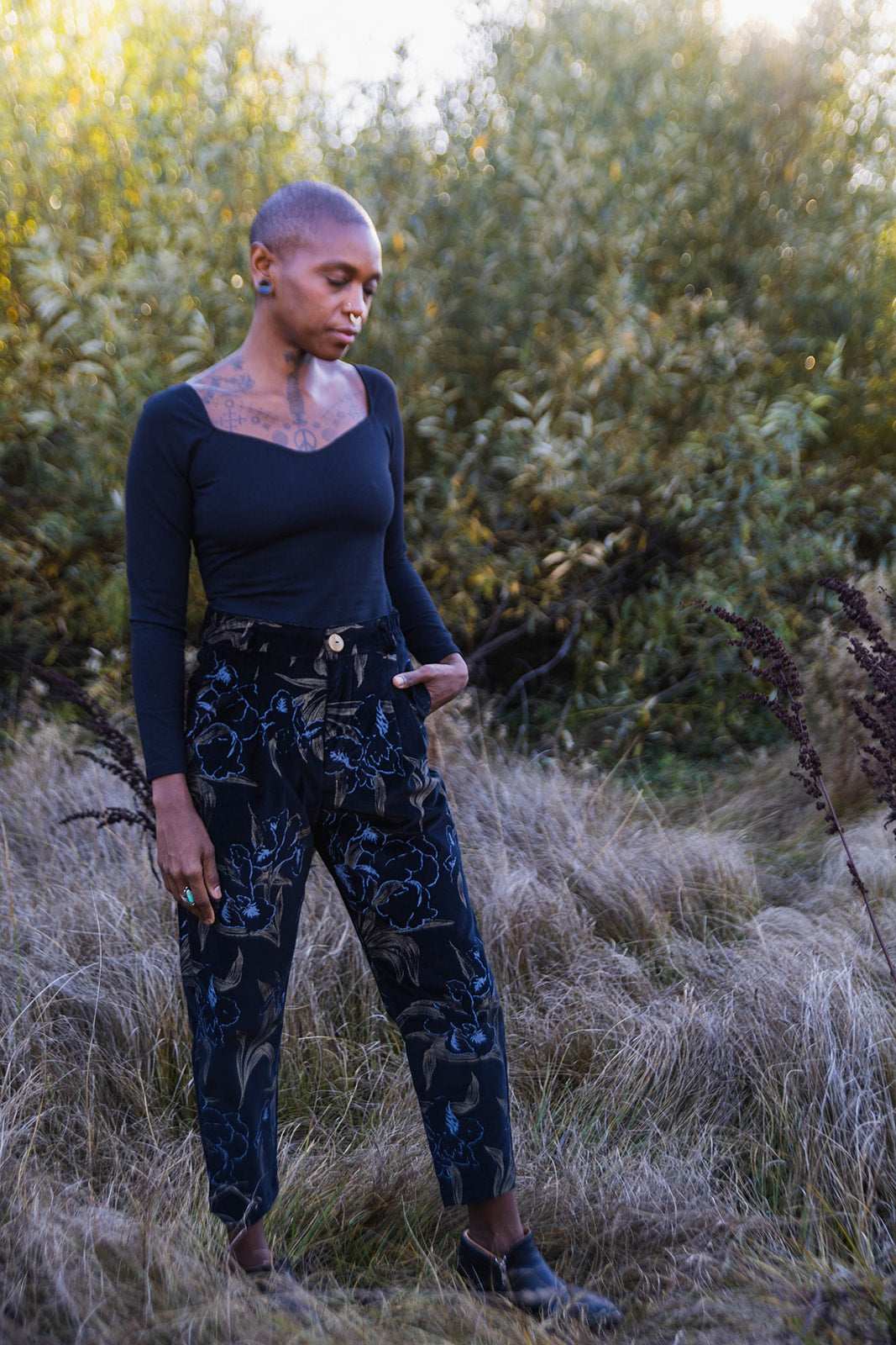 High waisted pants for femmes that don't like to wear pants. Our most flattering and versatile pant yet. Magically makes everyone's booty look amazing with no darts!