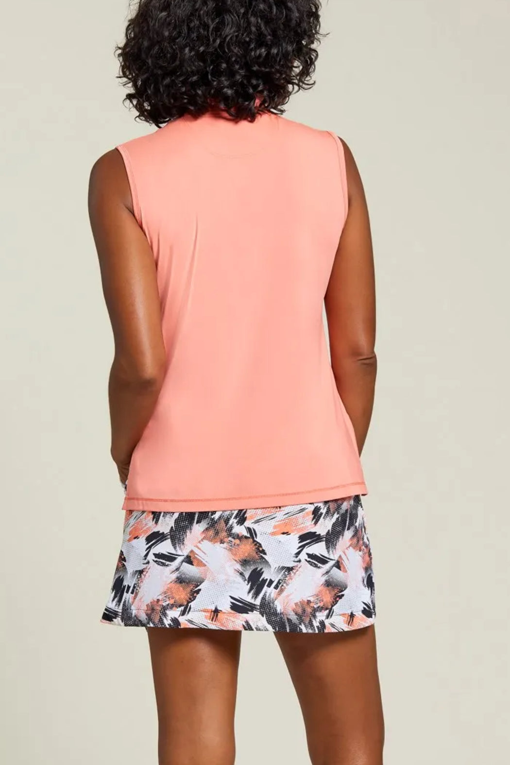 Mesh inserts at front, styled front hem with side slits, fast-drying, moisture-wicking, UPF 50+, anti-bacterial treatment