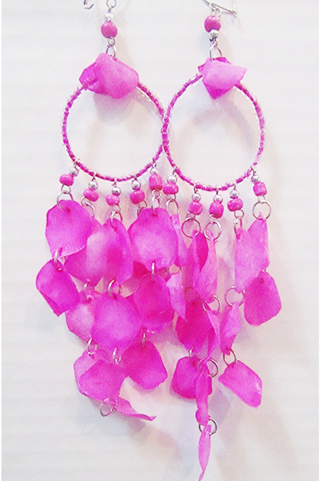 Light as a feather fish scale earring in beautifully bright dyed colors. They look like tiny cascading flower petals, but are actually fish scales from fish native to the Amazon River.
