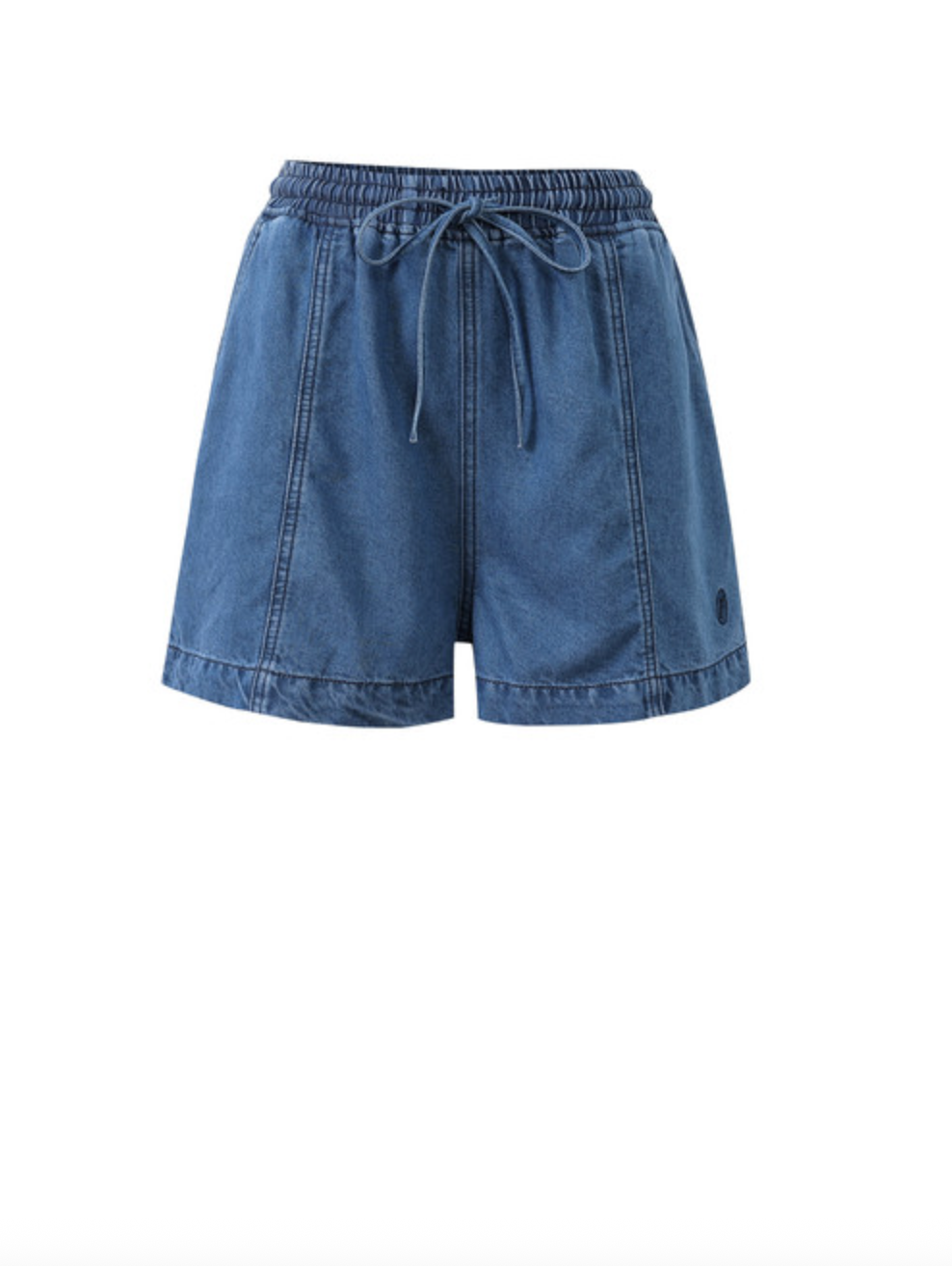 Introducing the Phanelie Shorts, made from 100% Lyocell material for a flowy and comfortable fit. These denim shorts feature an elastic waist for ease of wear. Experience style and comfort all in one with these versatile shorts.