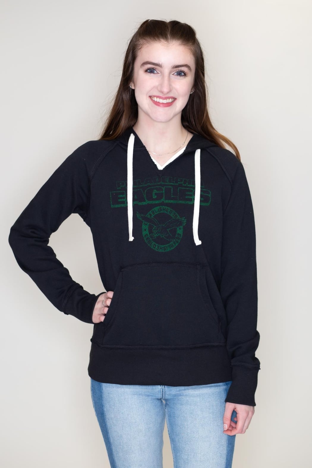 Philadelphia Eagles hoodie with raw edge seams and front pocket.