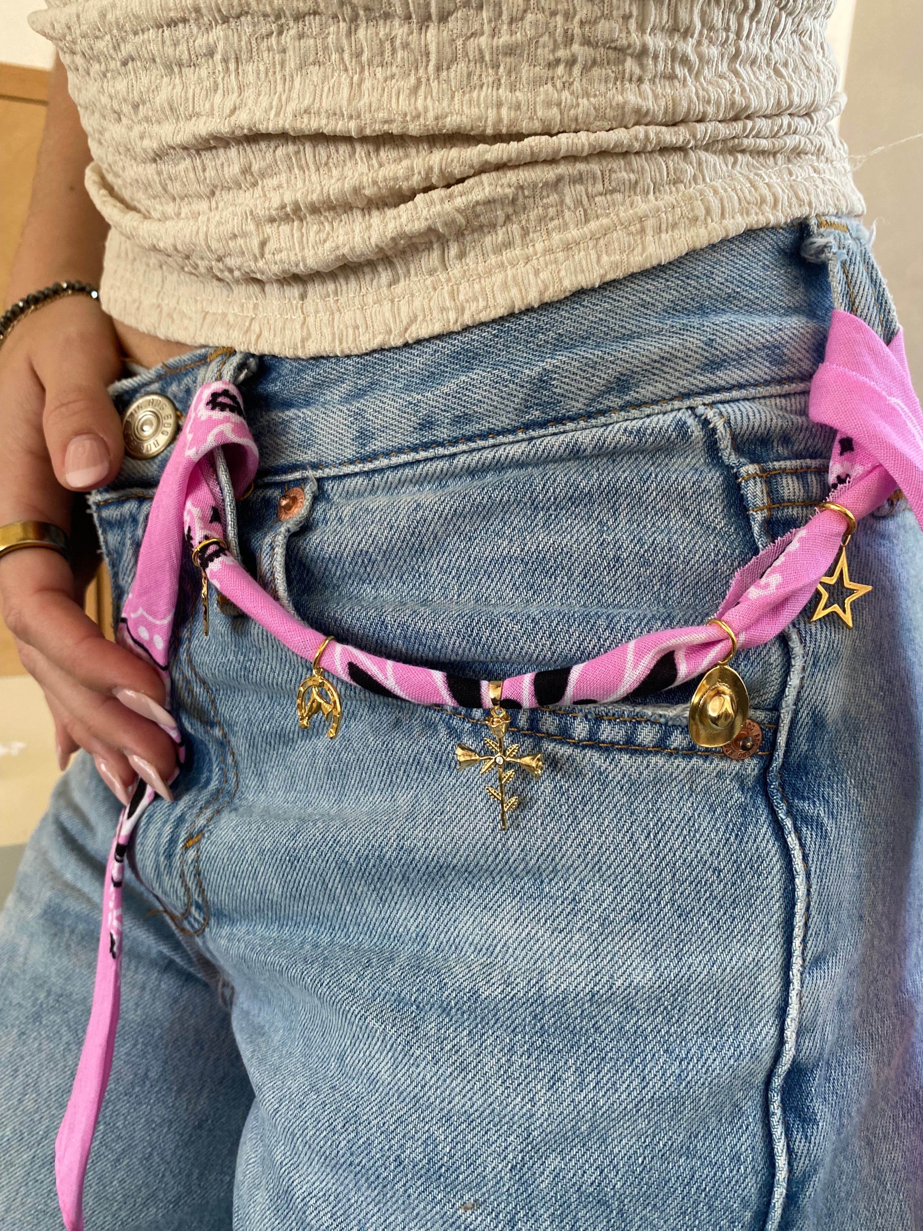 Add a touch of summertime style to your outfit with the Pink Bandana Necklace. This fashionable accessory will elevate your look and make a statement wherever you go. Perfect for any occasion or to add a pop of color to your everyday look.