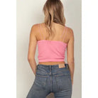 Pink Crop Stretchy Double Strap Slim Fit Tank Top