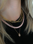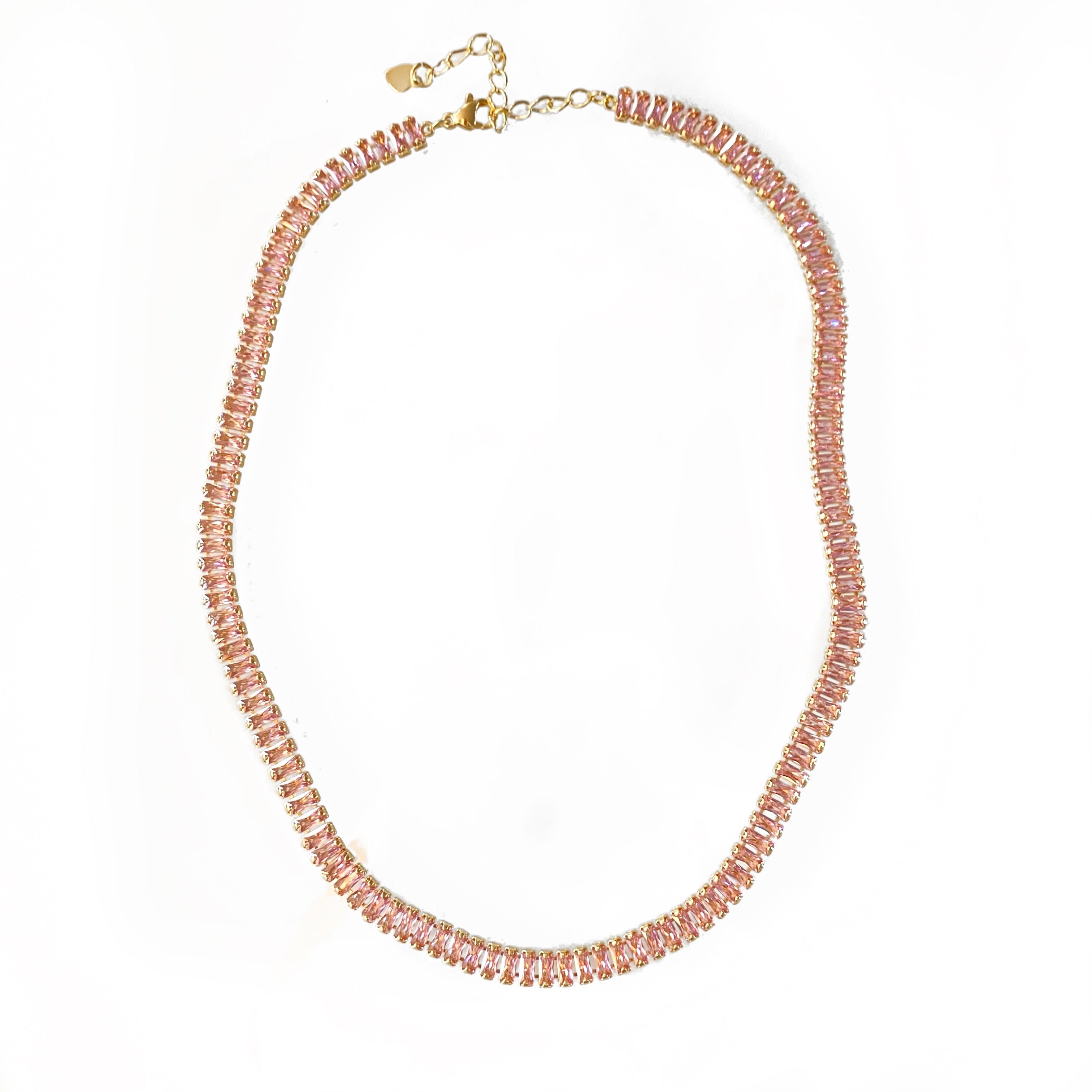 Pink CZ Chain - The Pink CZ Chain is this seasons hit. Light pink on a dainty shimmering necklace is always a good move.
