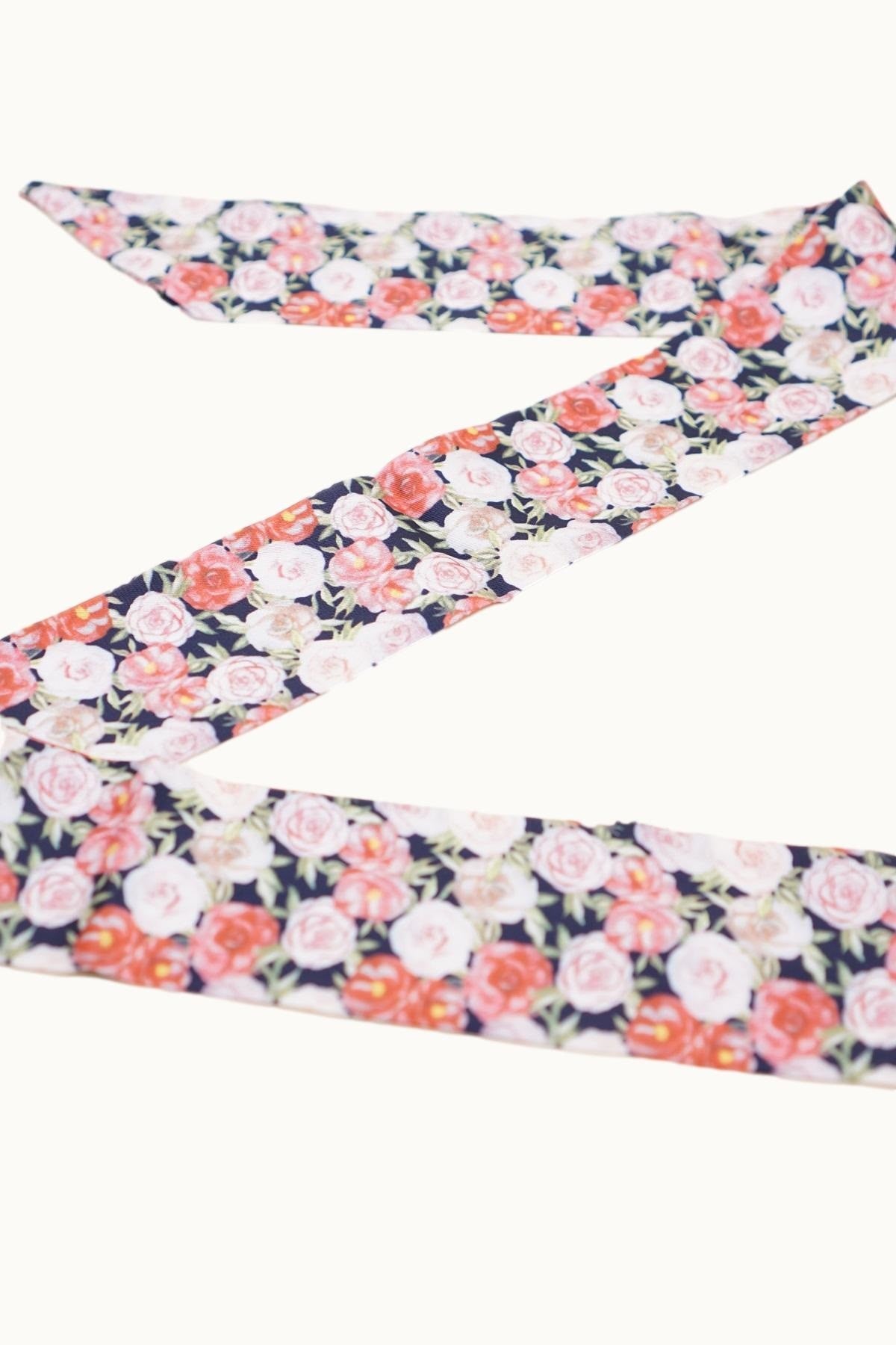 Pink Floral Print Satin Scarf for Hat, Ponytail, Purse
