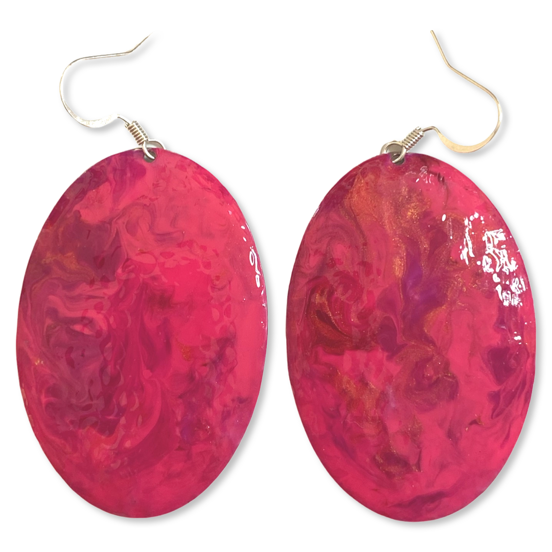 These hand painted pink marbleized Oval dome earrings are from our signature collection of Lures of Love Earrings.