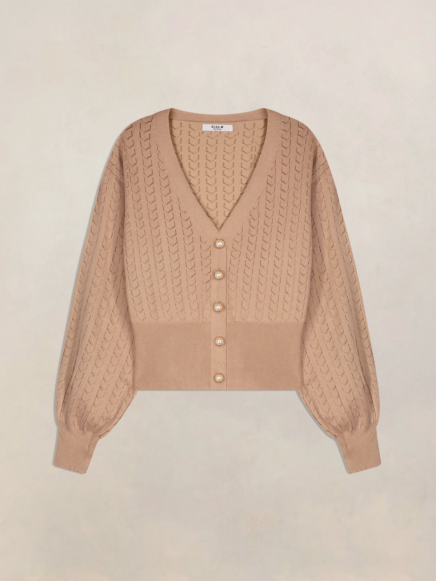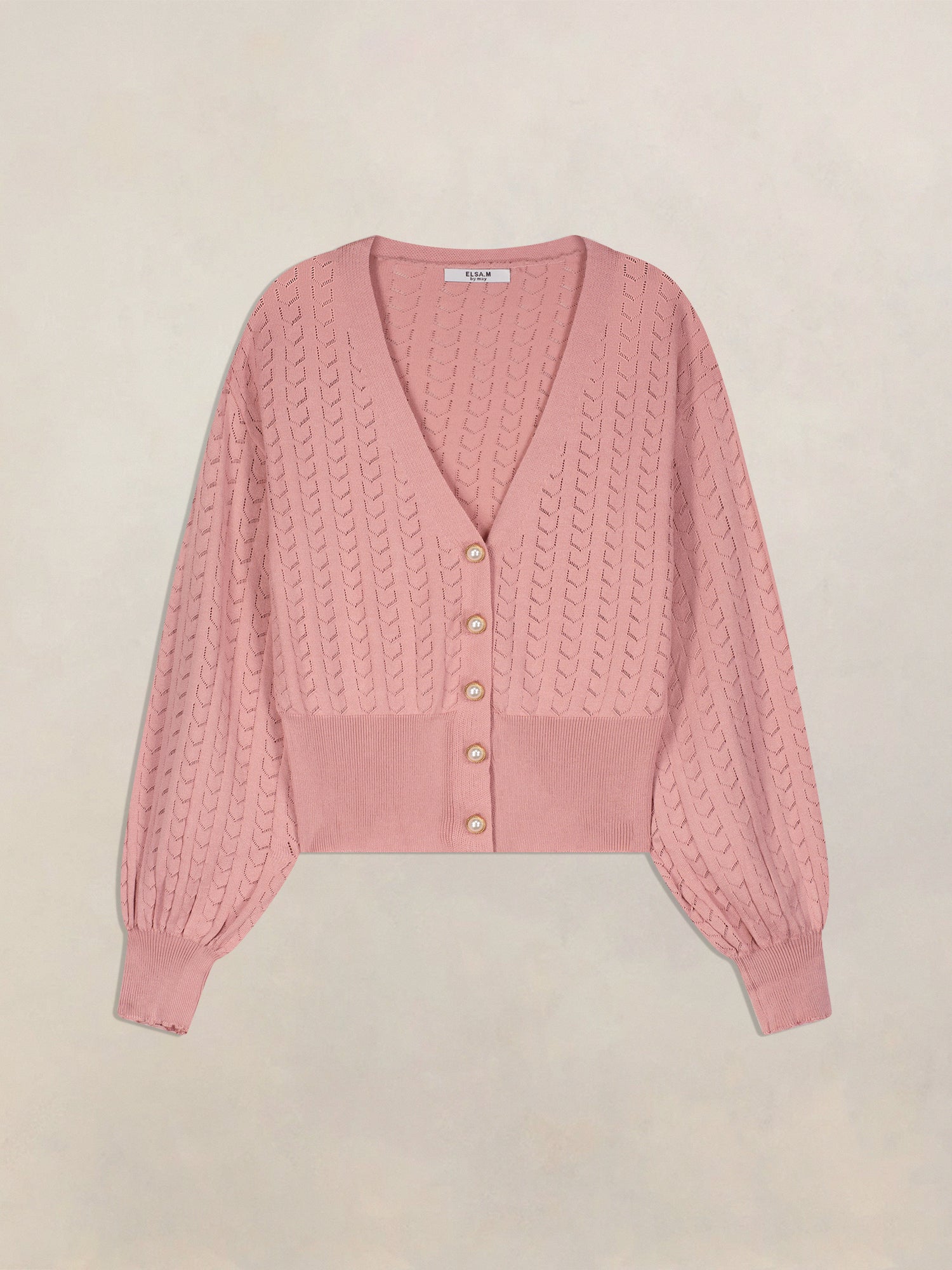 Pink Orchid The Karyn Pointelle V-Neck Knit Cardigan