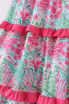 Get ready to turn heads in our Pink Palm Paradise print tiered mom dress! With its trendy, tiered design and vibrant palm print, you'll be the talk of the town. Perfect for a day out with the family or a tropical getaway. Go ahead, embrace your playful side, it's a paradise out there!