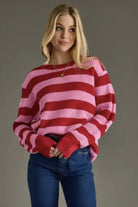 This pink and red stripe knitted sweater is perfect to cozy up or add some fun color to your outfit!
